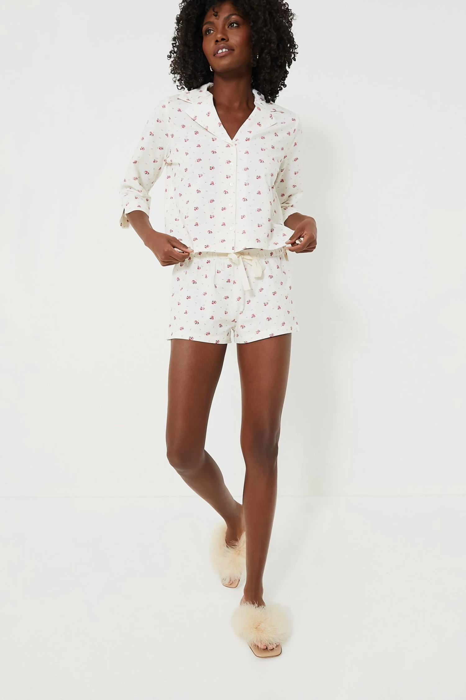 Drift off to dreamland knowing you look cute with the Bastienne Short Pajama Set. Printed with a rosebud pattern on a milk-white background, this style is crafted from the best quality cotton jersey that is thermal regulated and adapts to all seasons. A roomy shape, flexible elastic waist, small slits on the sides, – these pajamas are a no brainer!