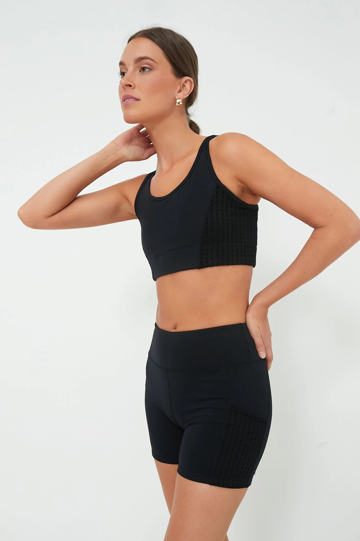 Long enough to wear solo with the matching shorts and streamlined enough to wear under a sport dress, the Black Cane Jean Sports Bra was designed for function without compromising style and shape. Featuring wicking properties and a power mesh interior that’s designed to add support and comfort, this will take you from a marathon to margaritas without a worry in the world of something popping out of place.