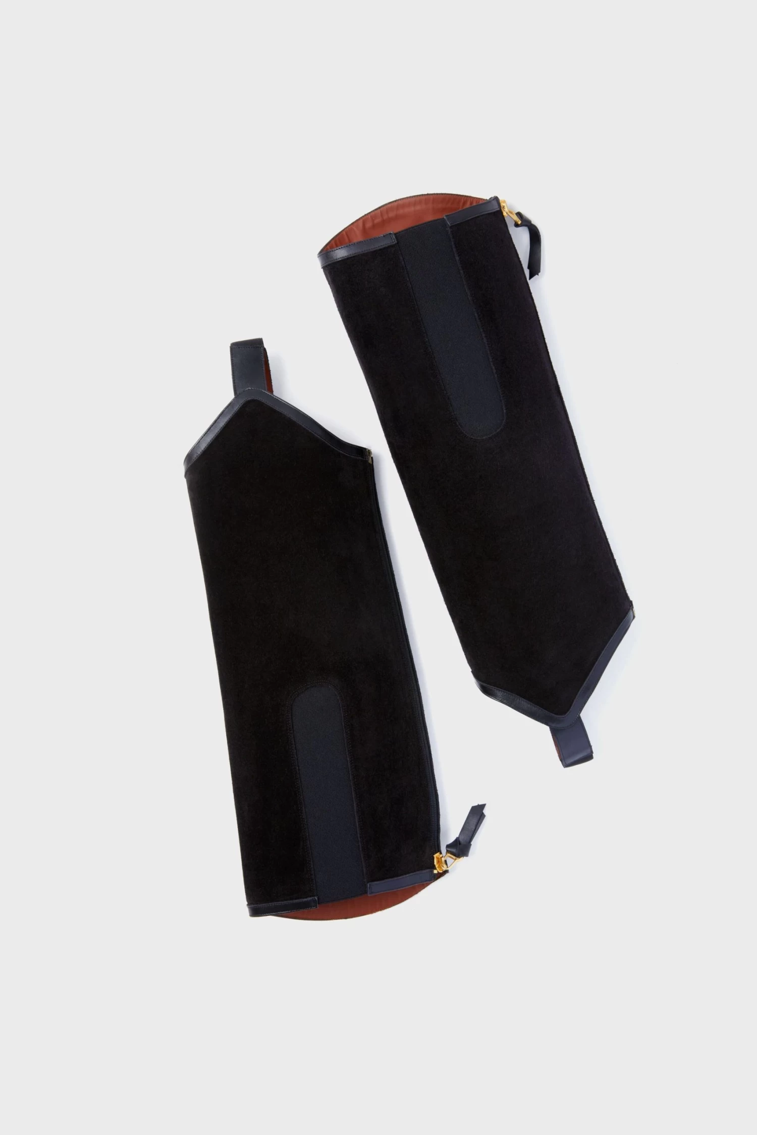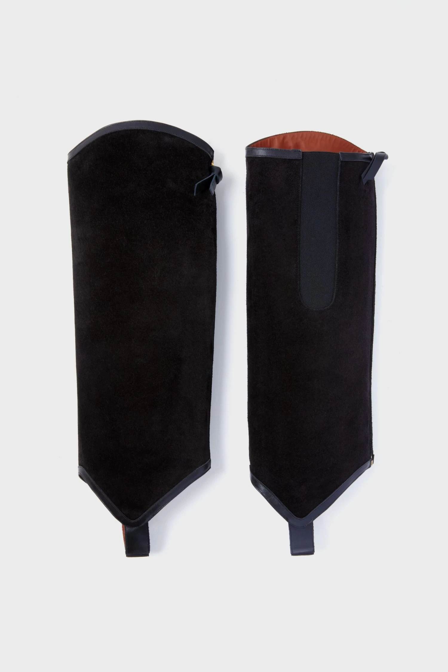 Transform ankle boots to knee-highs in seconds with the Black Crosta Leather & Black Calf Leather Long Gaiter. The higher curved edge on the outside of the gaiter gives your legs a longer, more slender look. The elastic side panel on the inside and the zipper on the back ease the fit, letting you quickly slip this Add-On Accessory on and off, according to your daily needs. Pair with black boots, a flouncy mini skirt, and a sweater for a classic look.