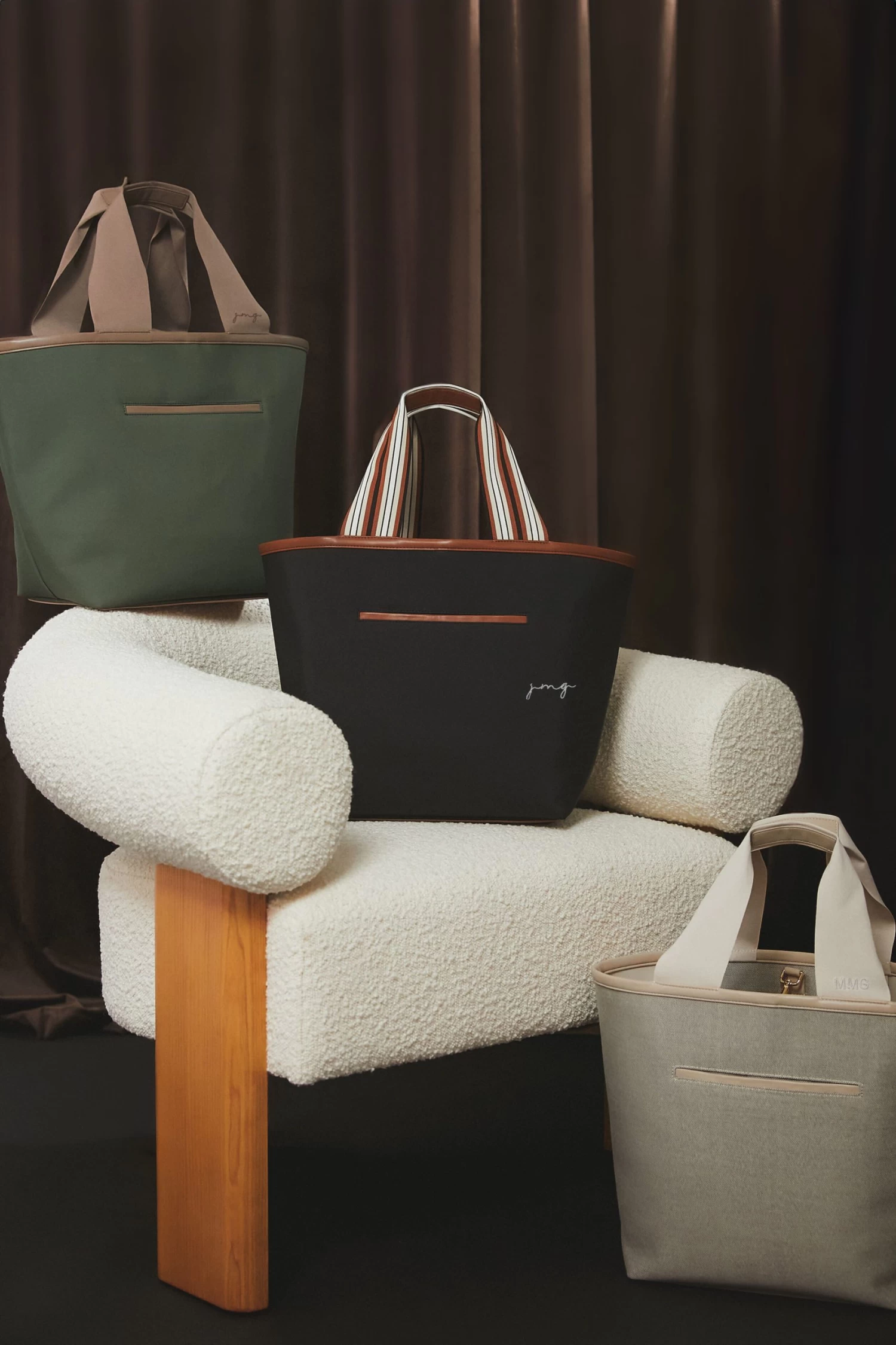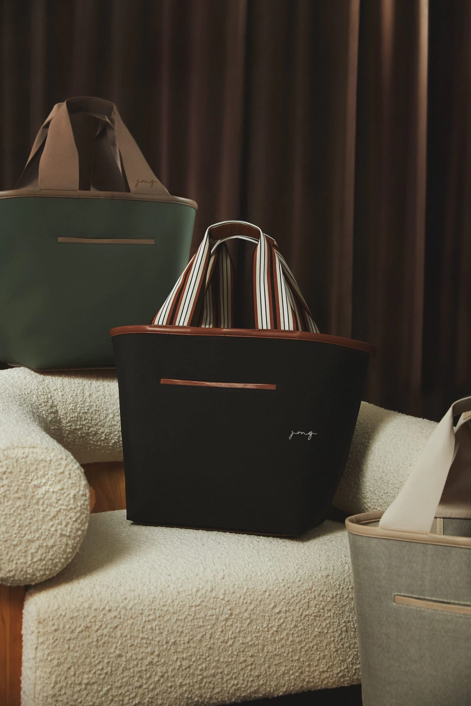 That perfect not-too-big, not-too-small size is achieved with the Black Nylon Tote Bag. Great for work, play, errands, and everything in between, this medium-sized bag features fun striped top handles, an open top with a clip closure for easy access, and plenty of pockets to keep you organized while on the go. Throw all your essentials for the day into this chic carryall and rest assured you’re seamlessly blending fashion and function.