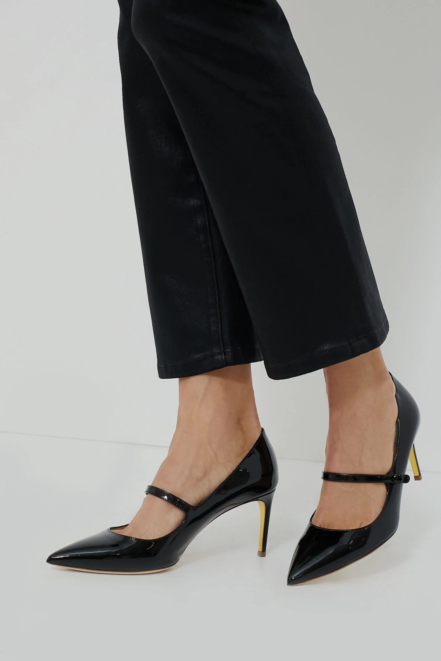 With a nod to girlhood, the Betty Mary Jane Heels are you favorite classic style upgraded to a mature high heel. In black patent leather, these shoes are guaranteed to be a year-round favorite. With a stiletto silhouette transformed with an arch strap and gold sole, these are just the right amount of classic, flirty, and modern. Pair with black trousers and a button down for a voguish office look, or with a LBD and gold jewelry for a night out on the town.