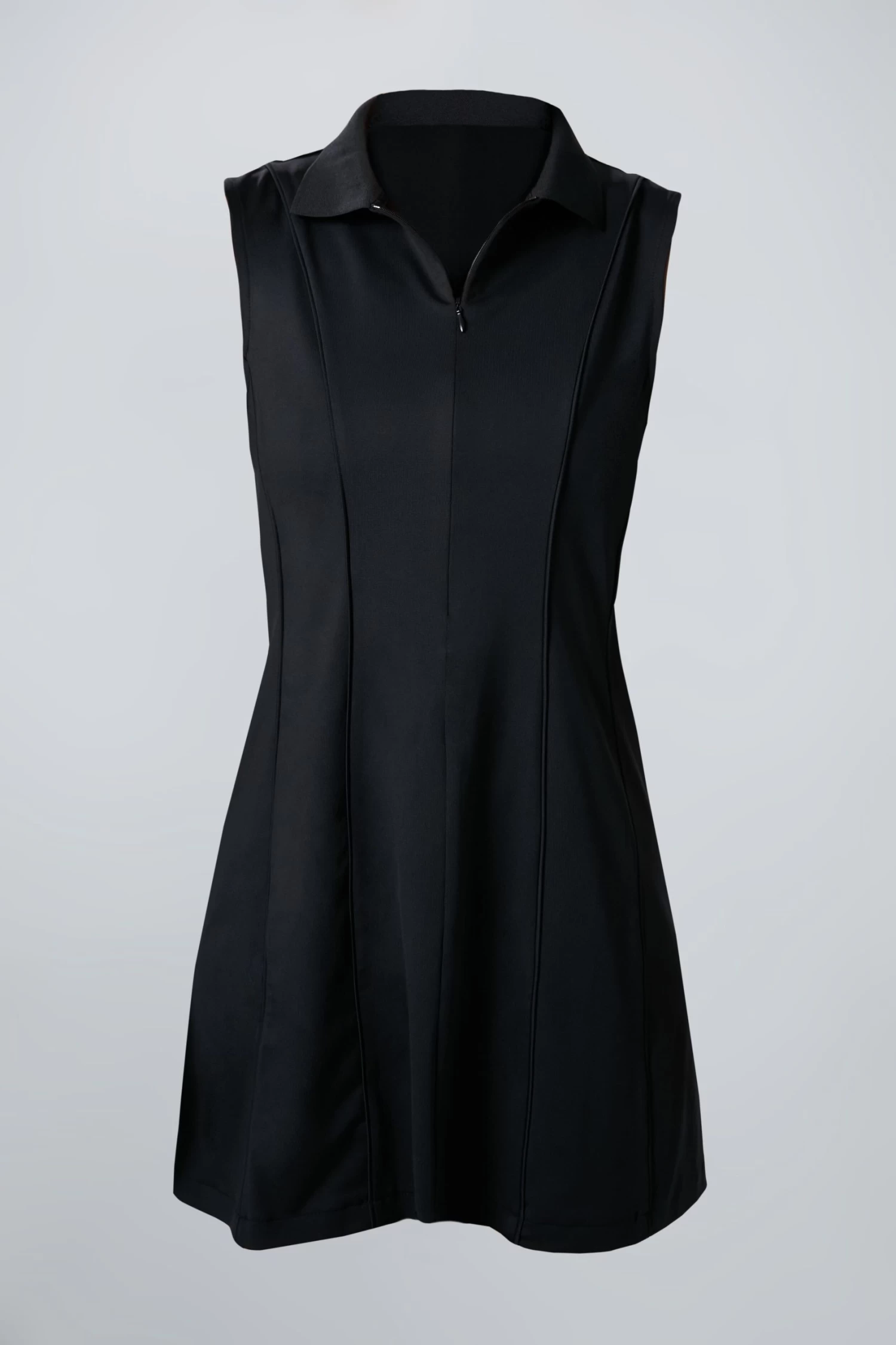 Take your beloved LBD, update it for the course, and you have the Black Roxana Half Zip Golf Dress. Designed with thoughtful functional details like the flat knit collar to provide sun protection on the back of your neck, not to mention adds a clean look for when you’re at the clubhouse. Multiple front seams enhance the fit and add an on-trend flare and the jersey knit fabric was created using superior stretch and quick-dry properties for comfort and movement when the game gets tough. Whether you’re up for some friendly competition on the links or grabbing a quick morning coffee before running errands, this performance piece will bring out your A game not matter the activity.
