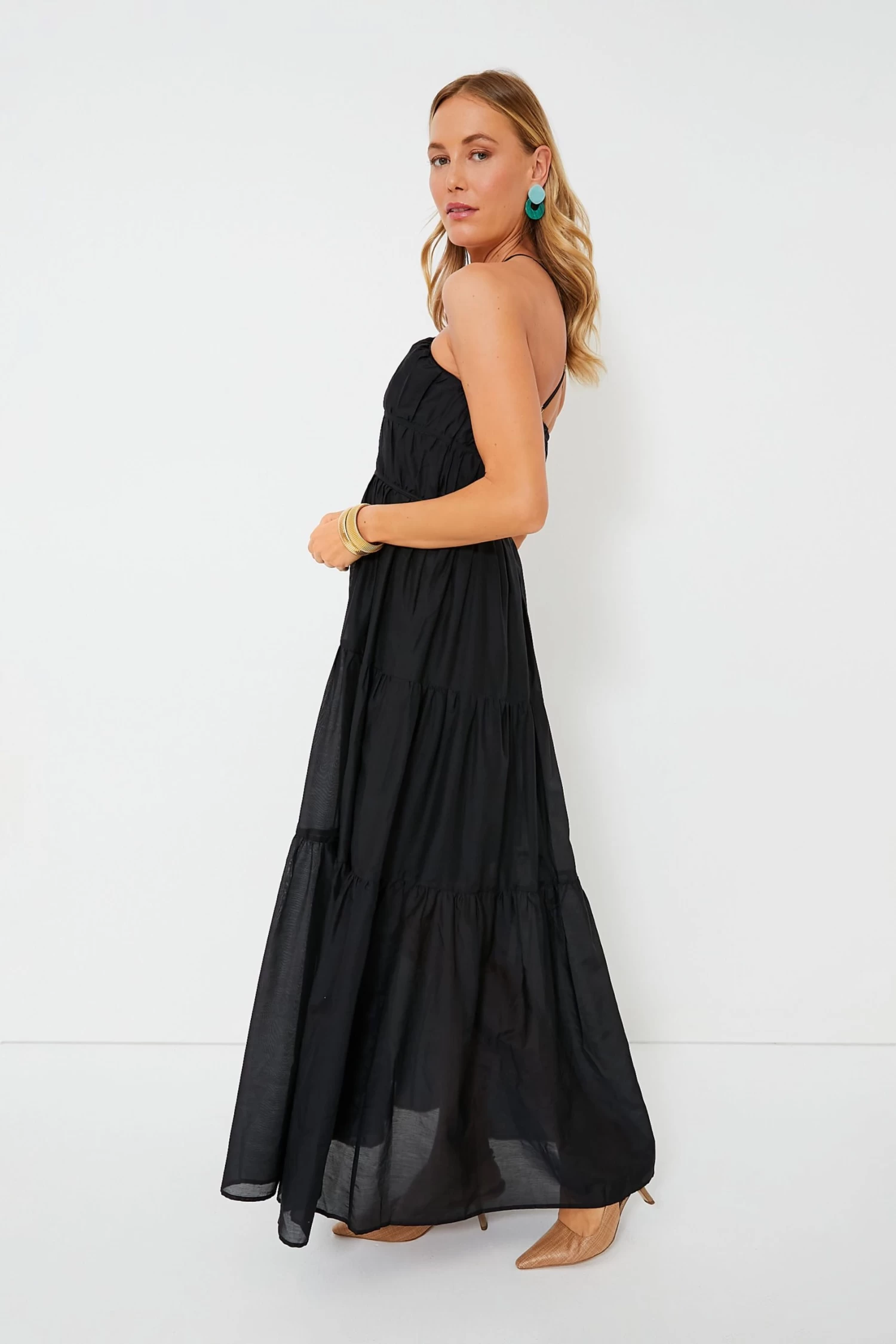 The Black Seraphina Maxi is a perfect party and event dress that you will find yourself wearing time and time again. A gently ruched bodice, flowing tiered maxi skirt, and criss-cross spaghetti straps create an ultra-flattering shape that can easily be styled for the occasion. Pair with heels and gold jewelry for a cocktail hour, or with sandals and a crossbody for a beachside dinner.