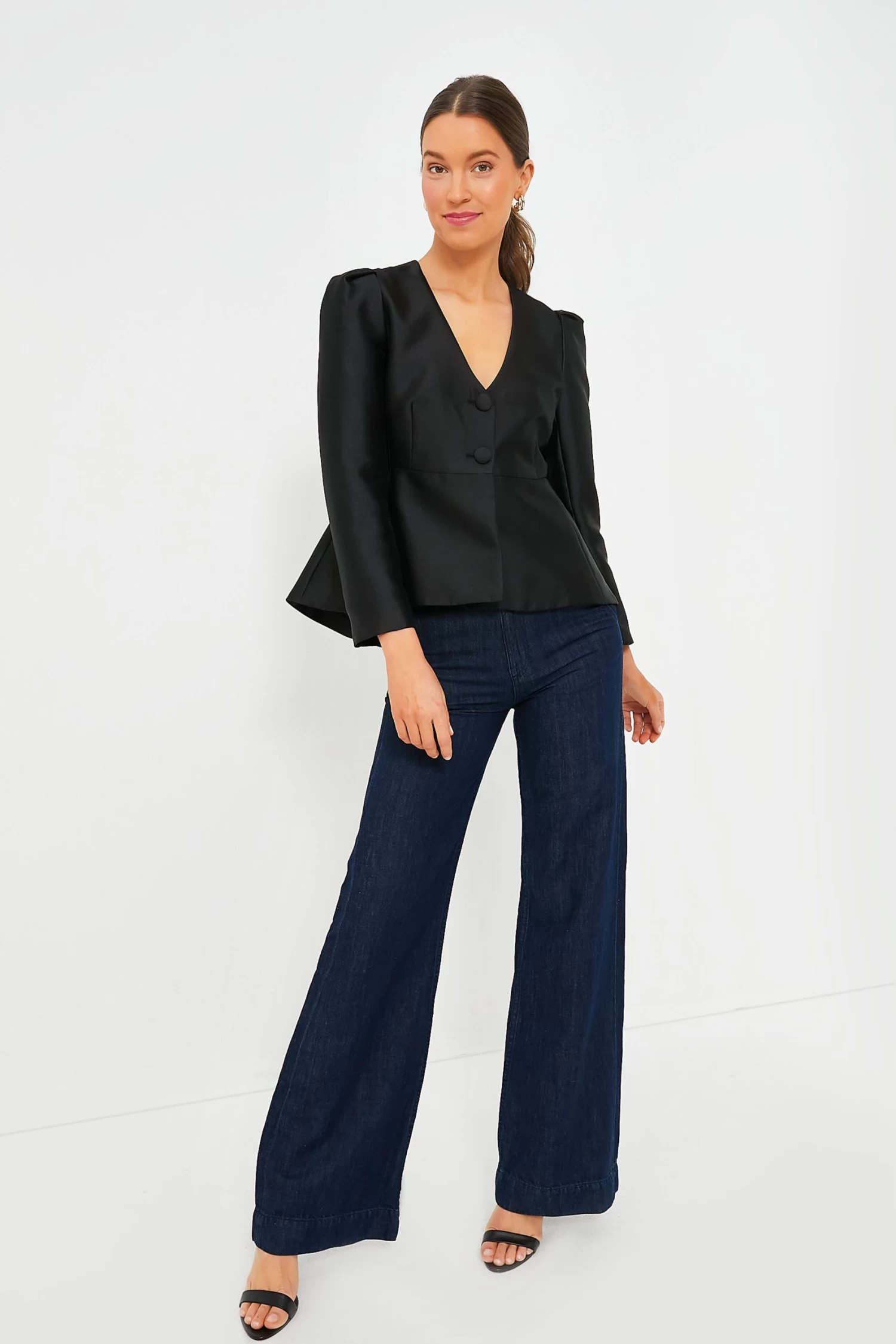 An elegant silhouette perfect for work meetings or date nights alike, the Black Zoey Top is absolutely chic. This graceful number boasts a V-neckline, peplum waist, and two front buttons, creating a sleek line that can be styled over and over again. We are pairing this with black pants and heels for a cocktail bar, or with a skirt and gold jewelry for a dinner party.
