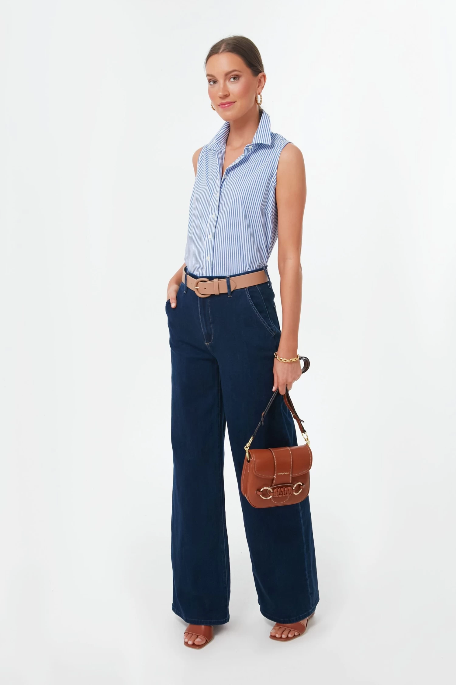 Your new warm weather staple, introducing the Blue and White Stripe Shirt. Layered under a sweater (hello summer office air conditioning) or on its own, this sleeveless number is a classic re-imagined to suit your downtown/uptown sensibilities. Constructed for the perfect fit, this blouse is cut with narrow armholes, which means your bra won’t peek through the side (and won’t peek through front either) and features No Gape® button technology to keep looking your best. Heading to the office, enjoying lunch with friends, and anywhere else in between, this classic-with-a-twist silhouette is a winner.