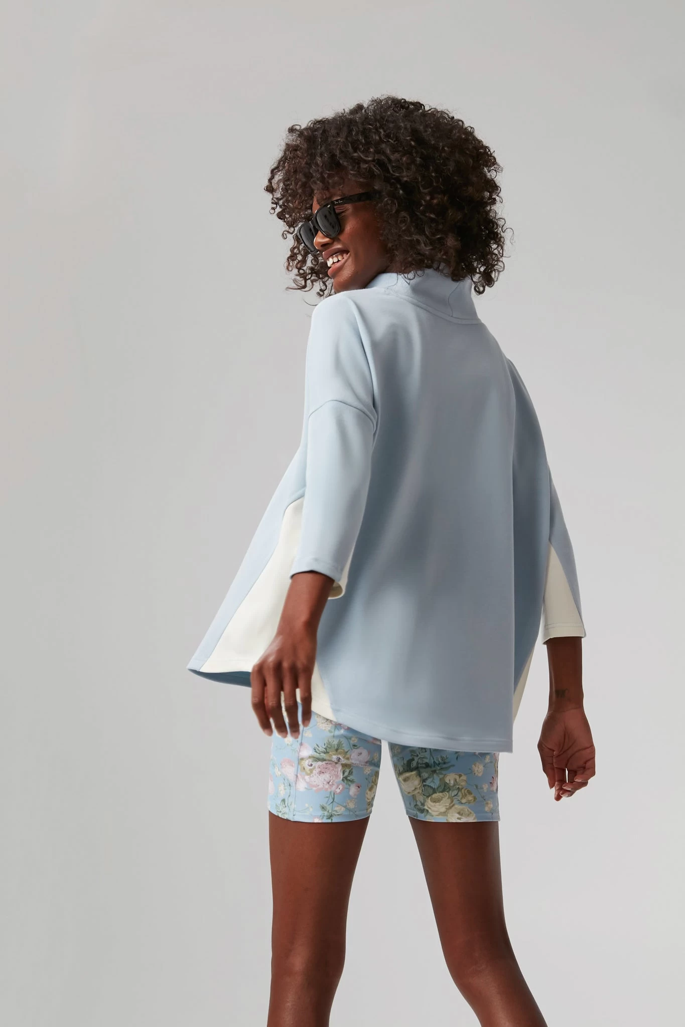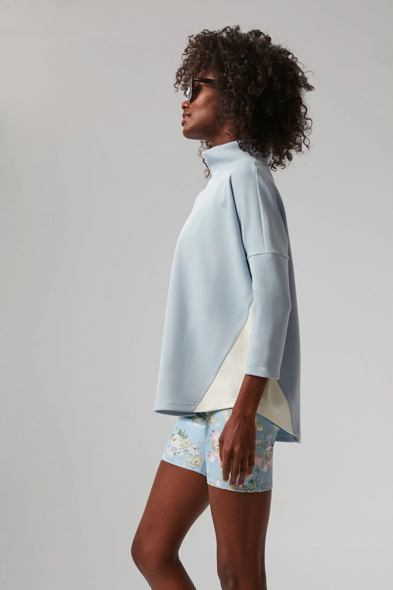 The perfect outfit topper to take you from a warm-up run to a coffee run, the Breezy Blue Ally Swing Sweatshirt was designed with mobility in mind. This best selling style features flattering and fitted sleeves, a swing body, and stand collar. This soft-to-touch sweatshirt pairs perfectly with leggings, shorts, and performance skirts for an all-activities piece.