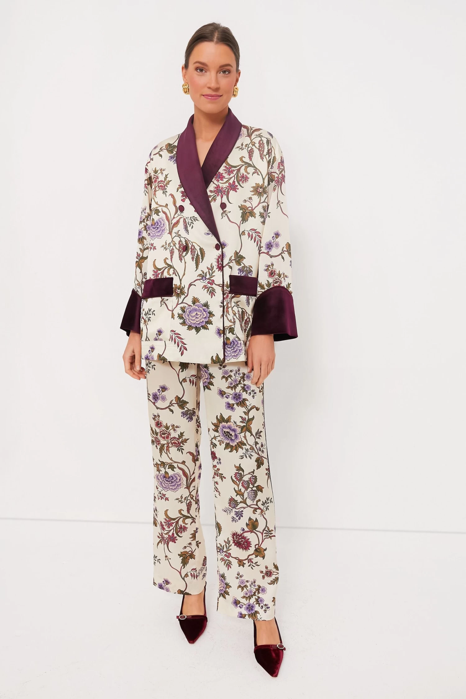 Sure to turn heads wherever you go, the Chantilly Vine Solene Pants are truly one of a kind. Printed with one of our signature prints for the season and trimmed with contrast piping down the side, these luxe bottoms feature a flattering high rise and a silky texture to top off an already fabulous silhouette. Go full maximalist and pair them with the matching smoking jacket, or style with a sleek blouse or a cozy knit for a chic look that’s sure to impress.