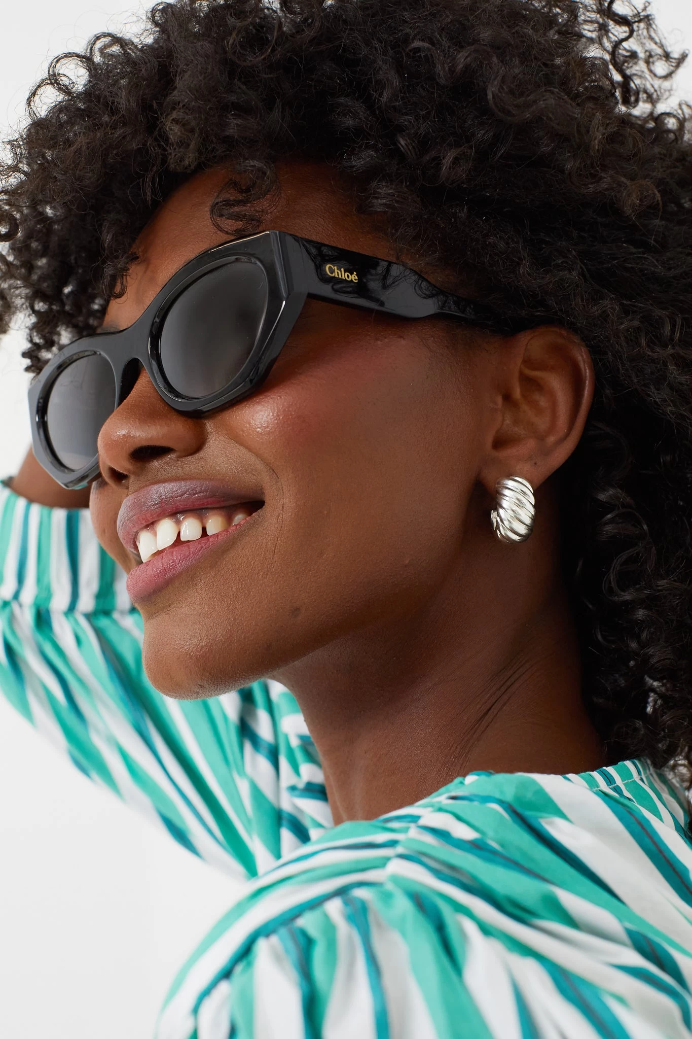 You will look like a Hollywood superstar in the Shiny Solid Black Cat Eye sunglasses. Made with wide, tapered arms, gradient lenses, and the Chloe logo on the temples, these are nothing short of pure chic. With 100% UVA/UVB protection, you can stay protected from the sun while being ultra-stylish.