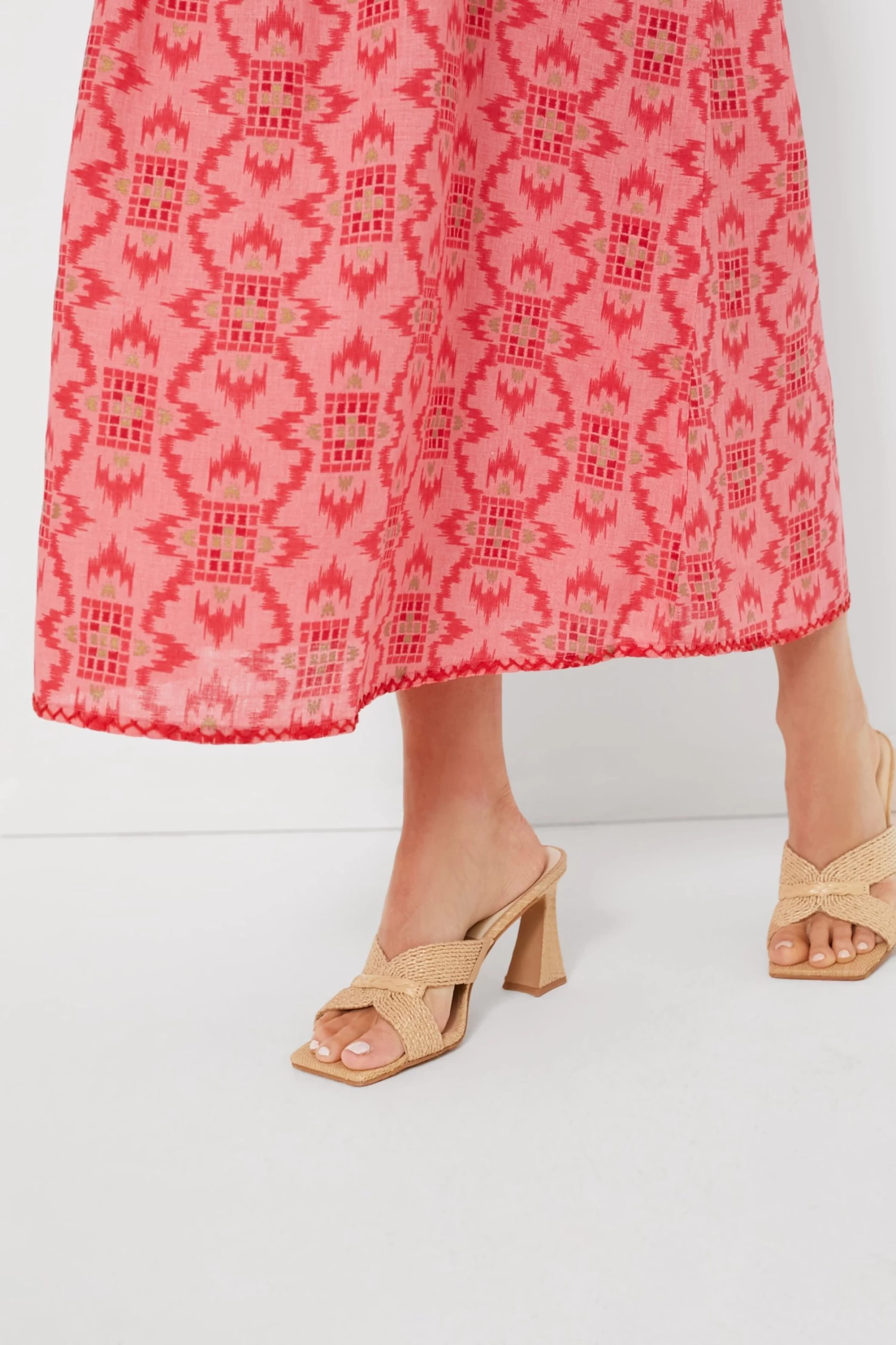 A sweet summer style to wear all season long, the Coral Ikat Obsidian Dress will have you more than ready for all your fun plans ahead. Classic in its silhouette, with a square neckline, thick shoulder straps that tie, and the flowy skirt adds to the bohemian charm of this elegant maxi. Add sandals and some statement jewelry for an effortlessly cool look perfect for anything from beach days to happy hour.