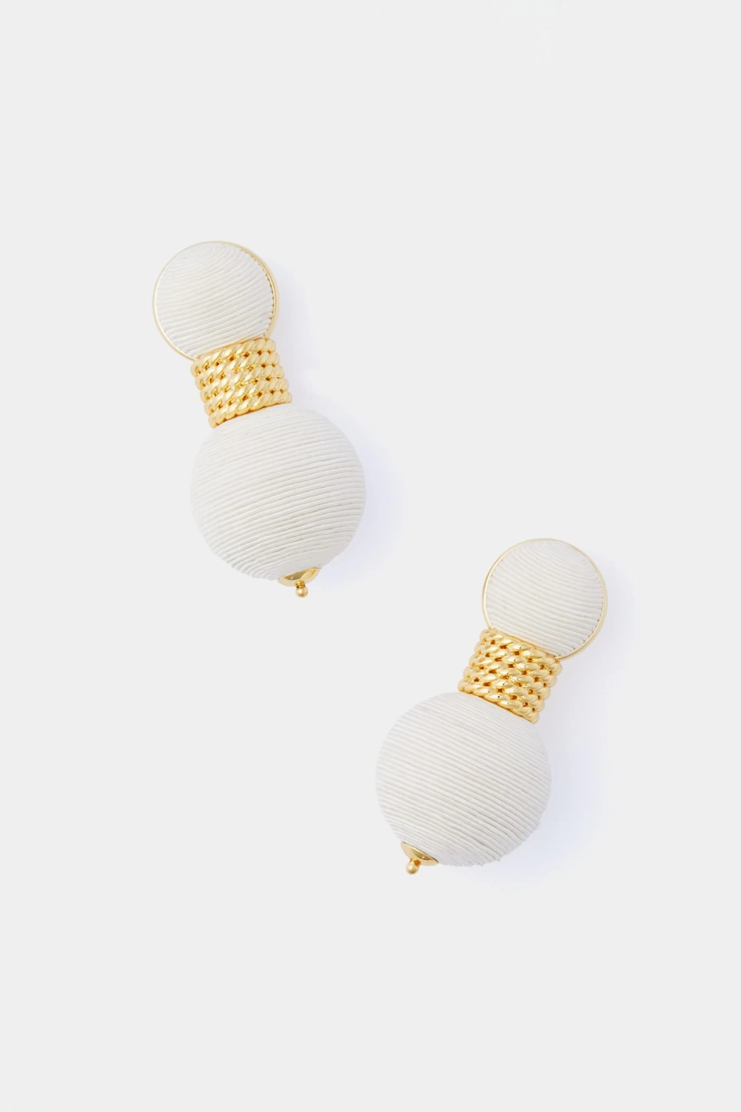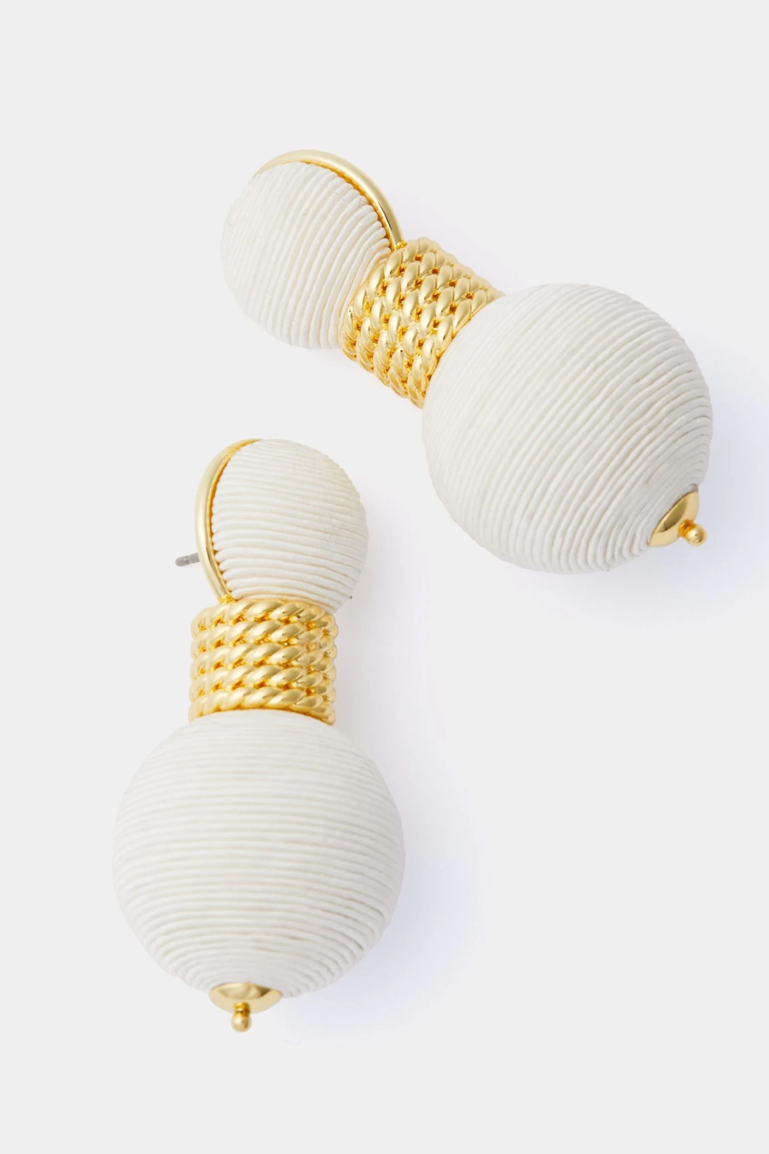 A playful addition to your jewelry box, the Cream Silk Geneva Earrings pair perfectly with solids and prints for an unexpected pop of texture. An update to our best-selling lantern earrings, this fresh and fun style features a gold cable knit chain at the center and faux silk thread for a luxe feel. Pair back to floral dresses and nuetral blouses for a modern and sleek look.