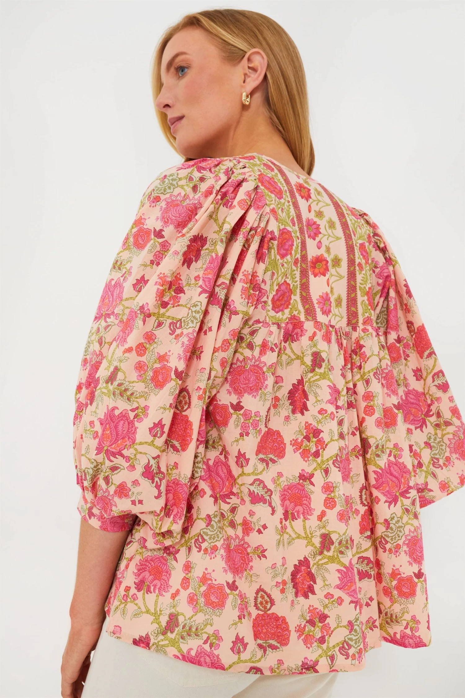 The Desert Bloom Charlie Blouse features billowy long sleeves, a breezy fit, and tassel ties at the neck. Made from super soft cotton, this easy style is also feminine and elevated, making it perfect for the warm-weather months. Pair with denim and espadrilles or sandals for an adorable ensemble!