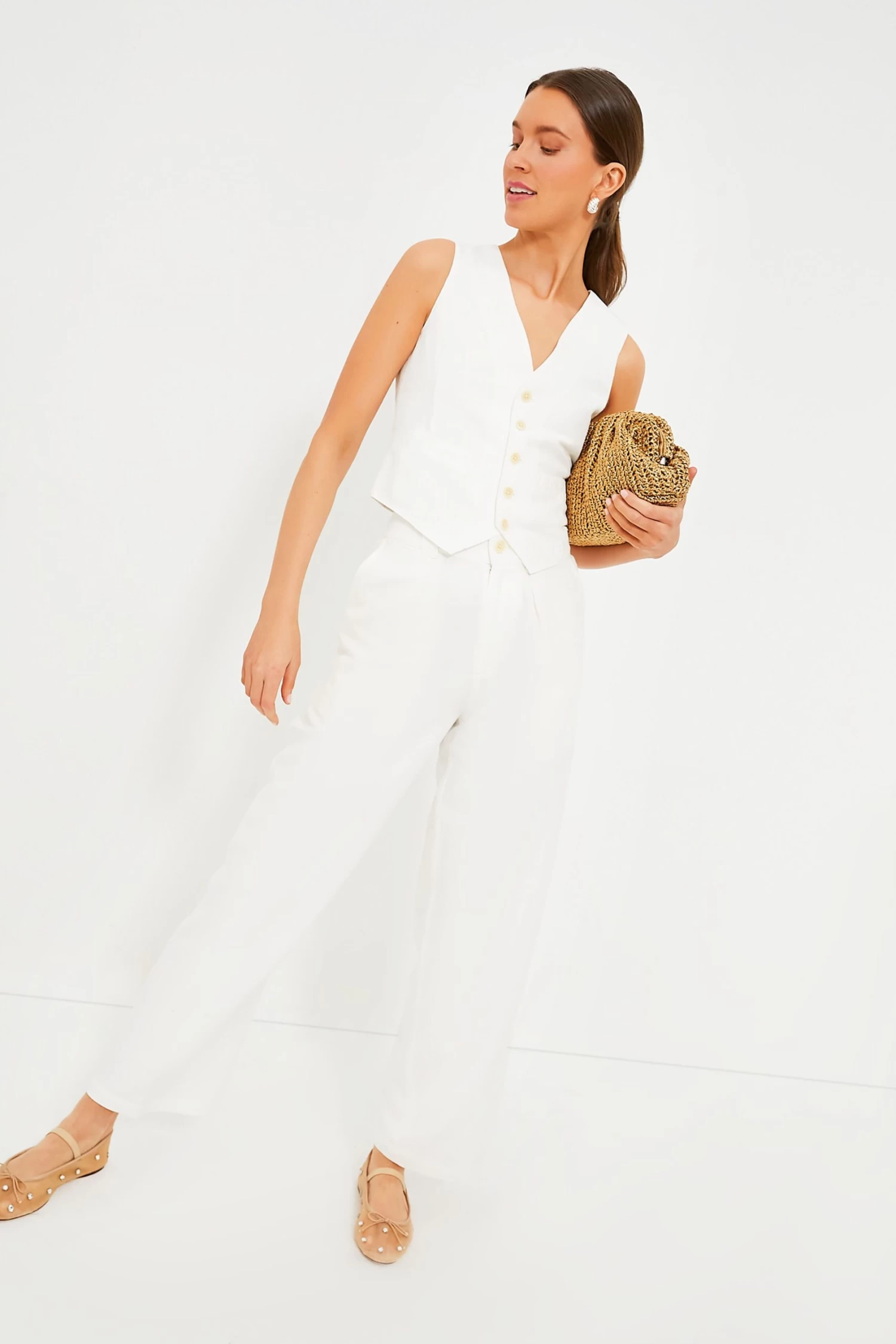 Step out in style and comfort, the Ecru Madeline Pleat Twill is the slouchy trouser of our 90s dreams. Made from a linen cotton blend, these are the epitome of downtown cool thanks to a slightly low rise and single front pleat. Confidence and charm will be easy to come by when you pair it with the matching Ecru Twill Kam Vest or simply wear it with a tee, a tote and a hat to explore a new town.