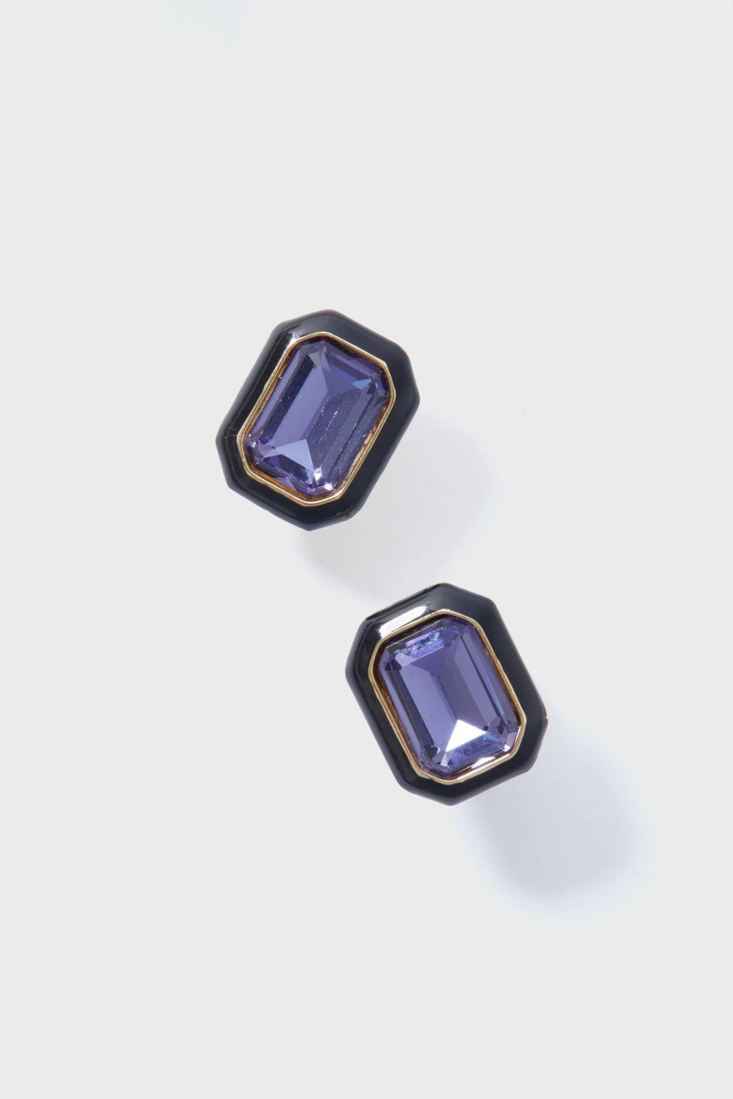 Full of alluring beauty, the blue and black Francesca Studs offer endless wearability. In high-shine, luxurious materials, these have a chic silhouette with an eye-catching gem at the center of the enamel bezel, creating a classic, all-occasion design. We are styling these with everything from cozy knits, to denim jackets, to floor-length dresses.