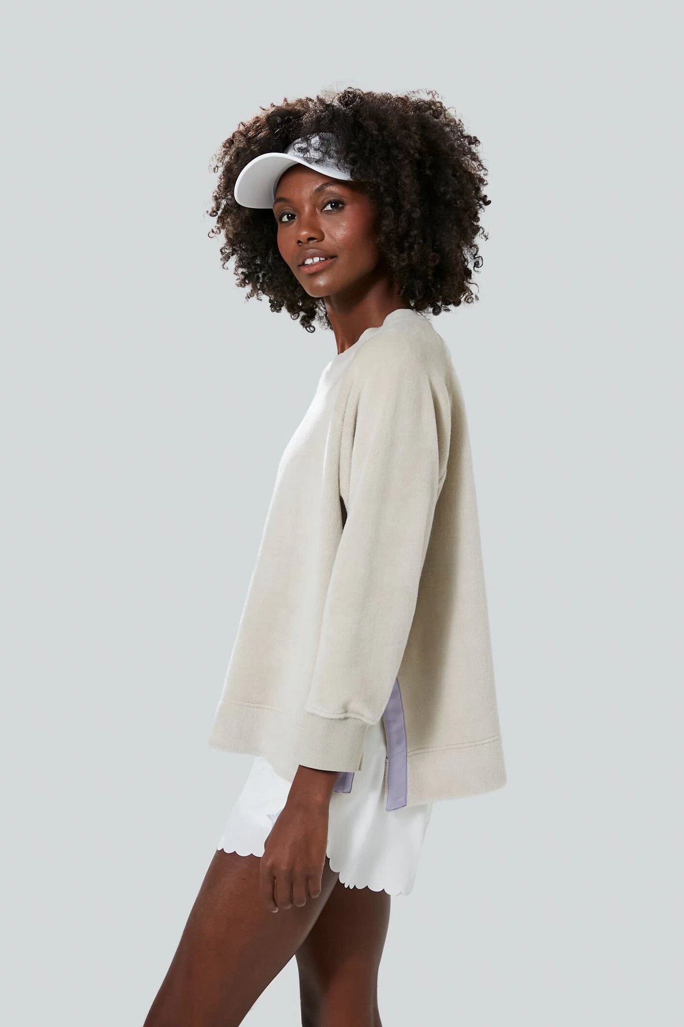 Designed with the busiest of days in mind, the Gray Velour Maggie Pullover is the sleek and cool completion that your look needs. Constructed with attention to detail, a heavyweight and oh so soft velour fabric keeps you comfortable as you head to your morning workout, raglan cut armholes allow you to stay mobile and unrestricted, and a not too boxy cut makes this number ready to pull on and off as the day goes on. With a pop of color on the split side seams, all this trendy number needs is some shorts and sneakers and youâre ready to hit the courts⦠or if thatâs not your thing, add leggings and relax inside with a good book.