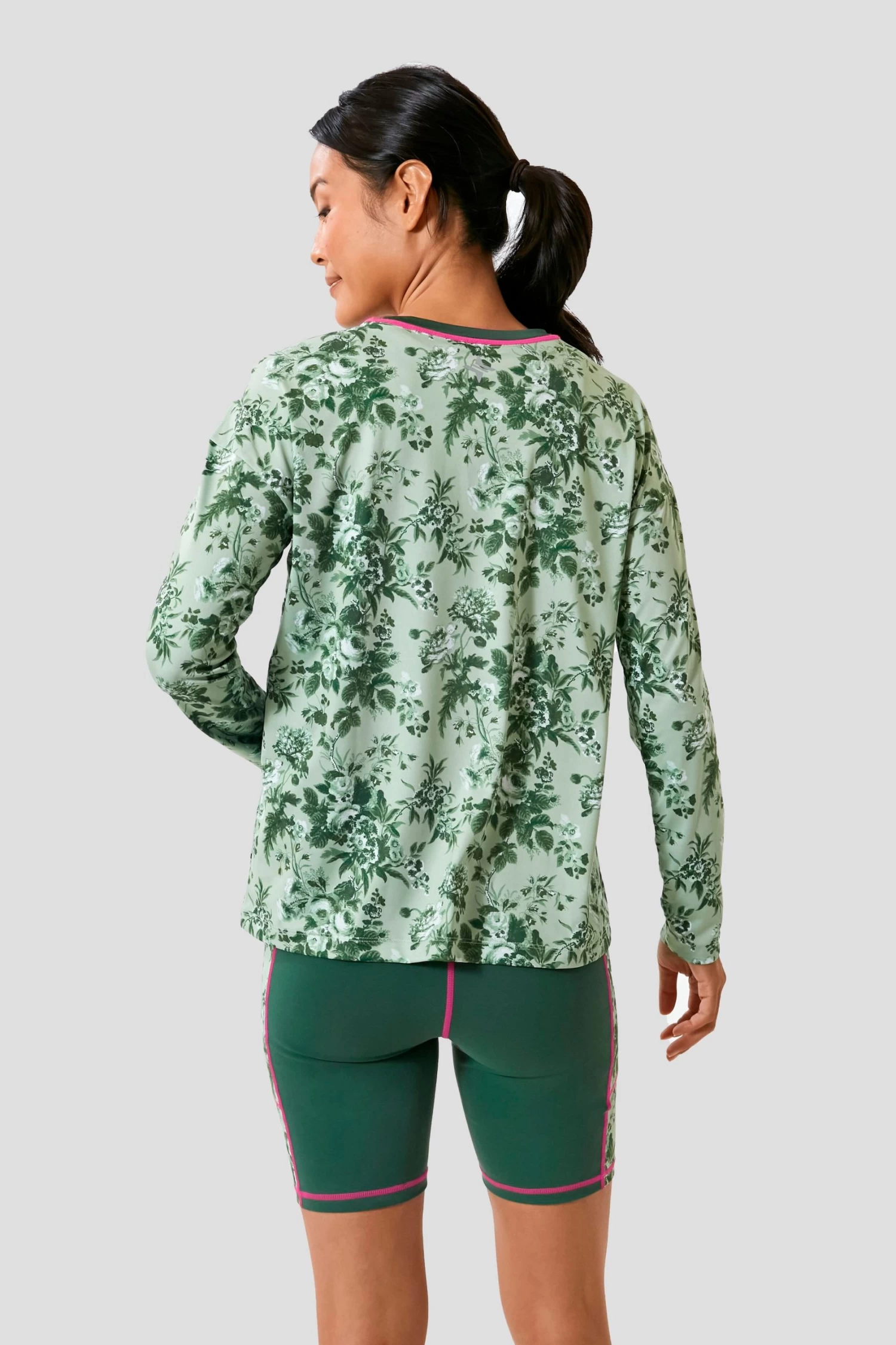 It’s our favorite boyfriend tee with long sleeves! We’re grabbing this for chilly morning coffee sessions and breezy waterfront runs. Perfecting (if we do say so ourselves) the slightly cropped, boxy but not baggy, sweat-wicking and quick-dry performance tee, this will take you from a quick sweat sesh to the juice bar faster than you can say “extra kale please!” Bonus: it pairs so well with every type of bottom that it’s all you will need to pack for your vacation workout…if you are into that kind of thing.