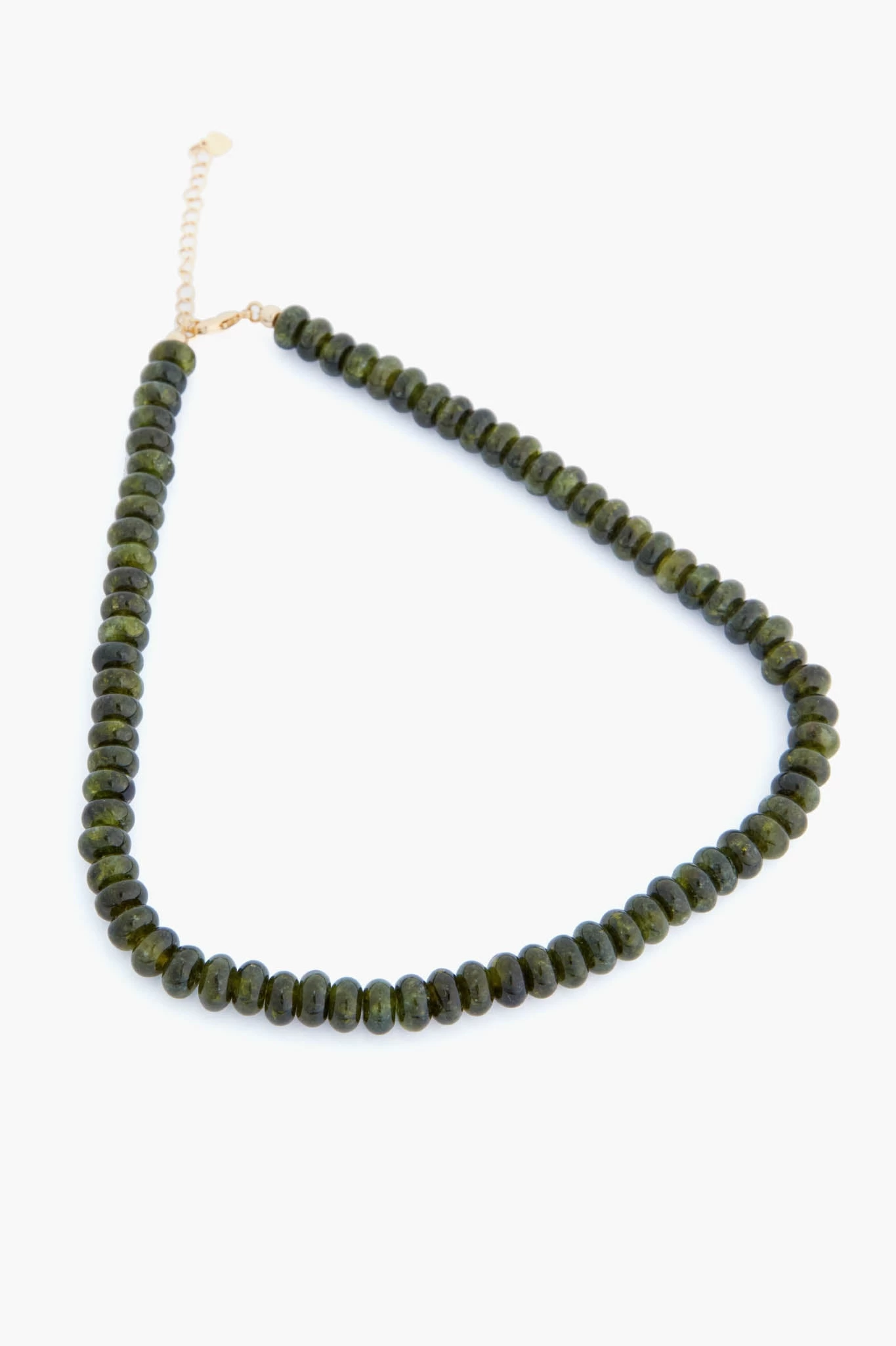 A bright addition to any jewelry collection, we love the fun energy of the Green Opal Necklace. The pretty verdant hue of these smooth beads gives freshness to a classic silhouette, and brings bold color to anything from a crisp cotton dress to a slim-fitting tank. With an adjustable length made to sit right at the collarbone, you can spotlight it solo or layer it with more jewelry in gold tones to accentuate your neckline.