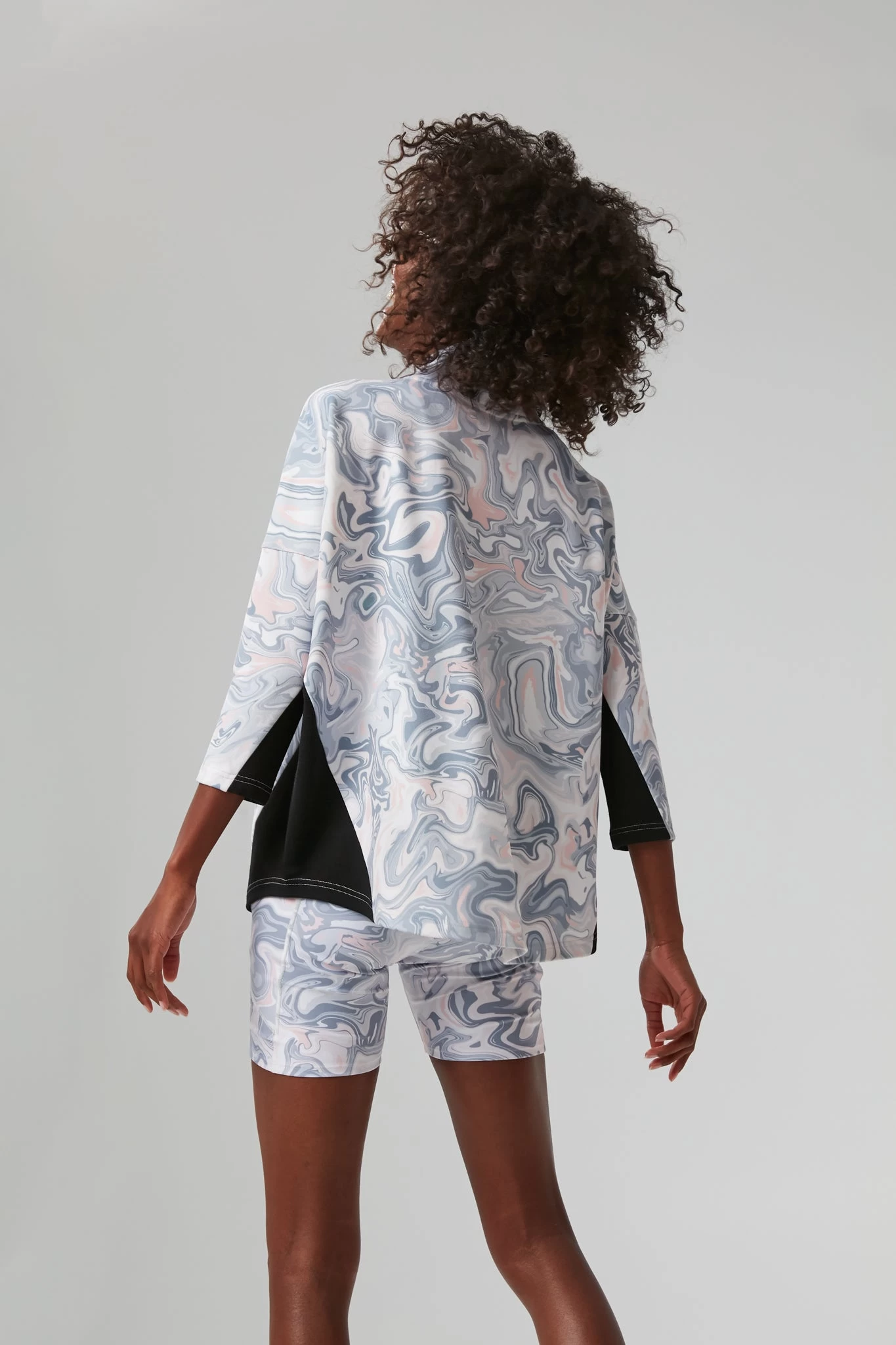 The perfect outfit topper to take you from a warm-up run to a coffee run, the Hazy Marble Ally Swing Sweatshirt was designed with mobility in mind. This best selling style features flattering and fitted sleeves, a swing body, and stand collar. This soft-to-touch sweatshirt pairs perfectly with leggings, shorts, and performance skirts for an all-activities piece.