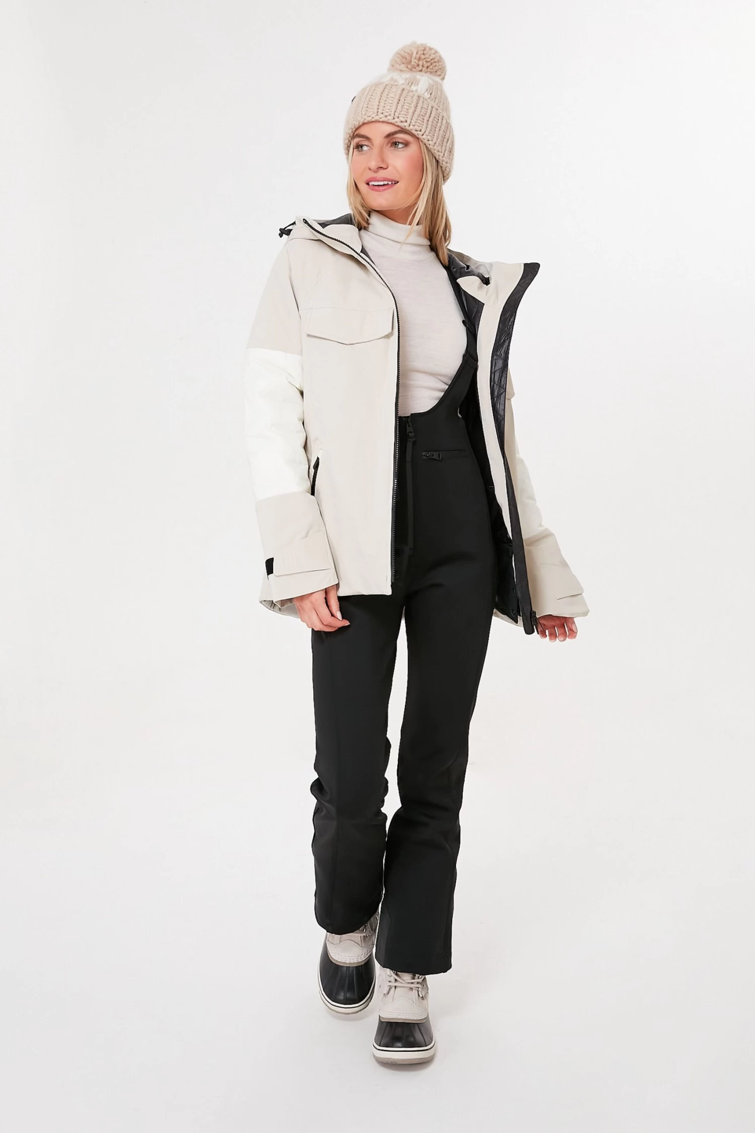A modern take on the classic ski jacket, the Canvas Belted Parka comes in a luxe neutral colorway with thoughtful details that elevate this silhouette. Extremely adjustable for a just-right fit, the attached hood can be cinched, the velcro cuffs can be tightened or loosened, the powder skirt can be worn or not, and the elasticated waist belt creates a flattering shape. Insulated with 100% post-consumer recycled materials to keep you cozy on the mountain, and a waterproof finish for the snowiest of days, this jacket looks just as good gliding through fresh powder as it does after the last run of the day with a hot toddy in hand.