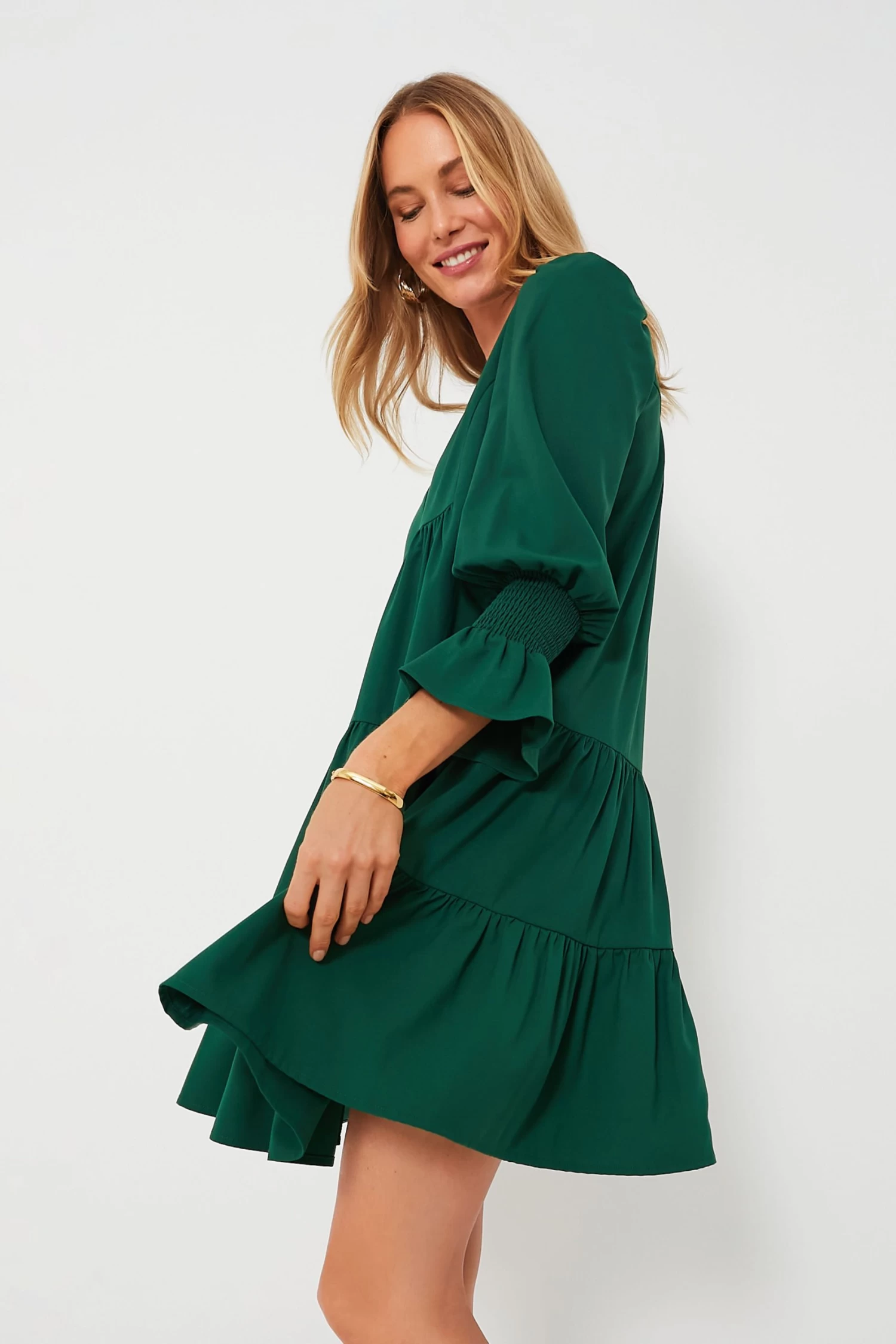 Meet one of our favorite silhouettes, the Crepe Kenzo Dress. Featuring feminine flutter smocked cuffs, a V-neckline, and a loose empire waist, this is the most flattering flirty frock! Pair this hunter green stunner with flats for a casual look or dress up with heels and statement earrings for date night.