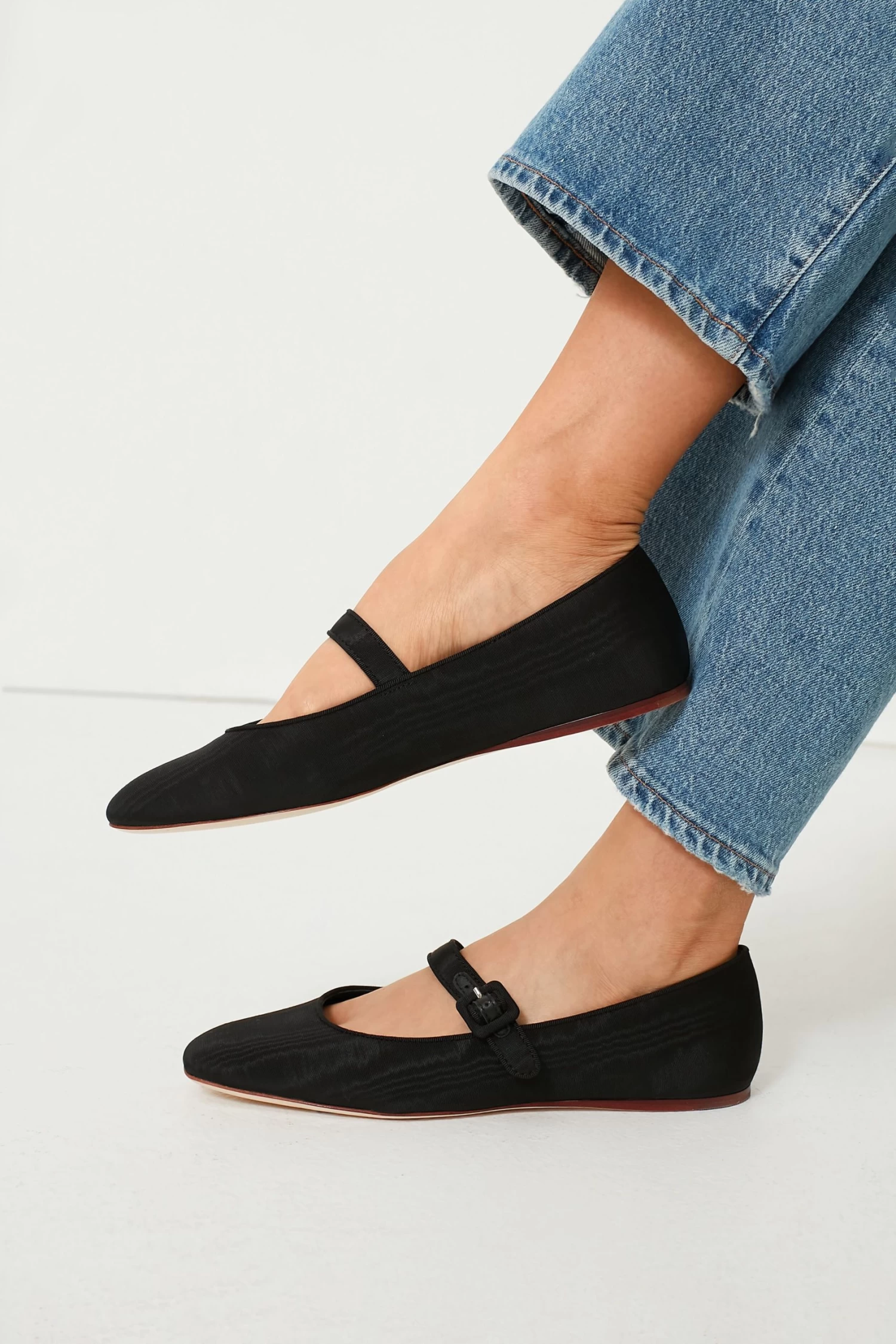 We love the Black Moire Ginger Flats for their versatility and delicate, feminine silhouette. A Mary Jane flat in black moiré with tonal piping, a padded leather footbed, and an almond toe- the elements of comfort and style will make this your new go-to shoe. Pair with everything in your closet from maxis, to LBDs, to denim.