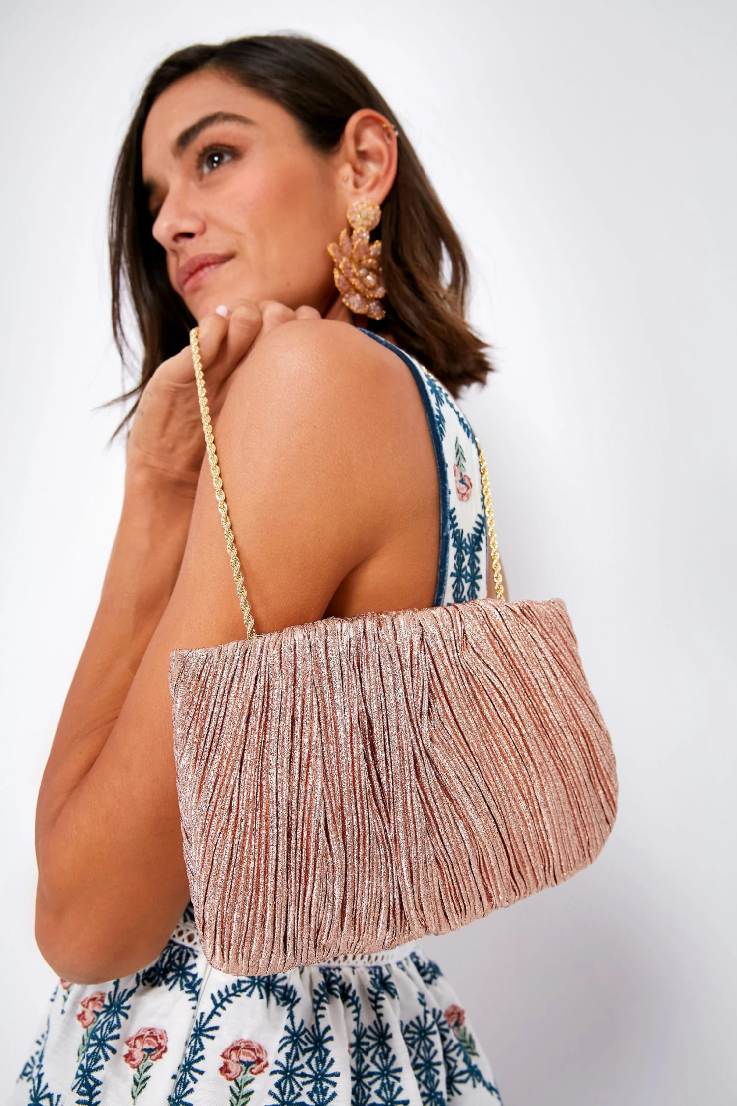 What better way to complete your look than with the Dune Brit Pleated Clutch? In a stunning Italian lamé fabric that catches the light, this delicately textured mini bag is the perfect accoutrement to any outfit, allowing you to go hands-free in style. Pair with an LBD for a party look sure to turn some heads or with a flowing maxi for dinner al fresco!