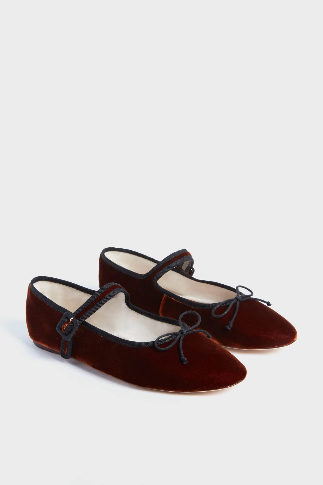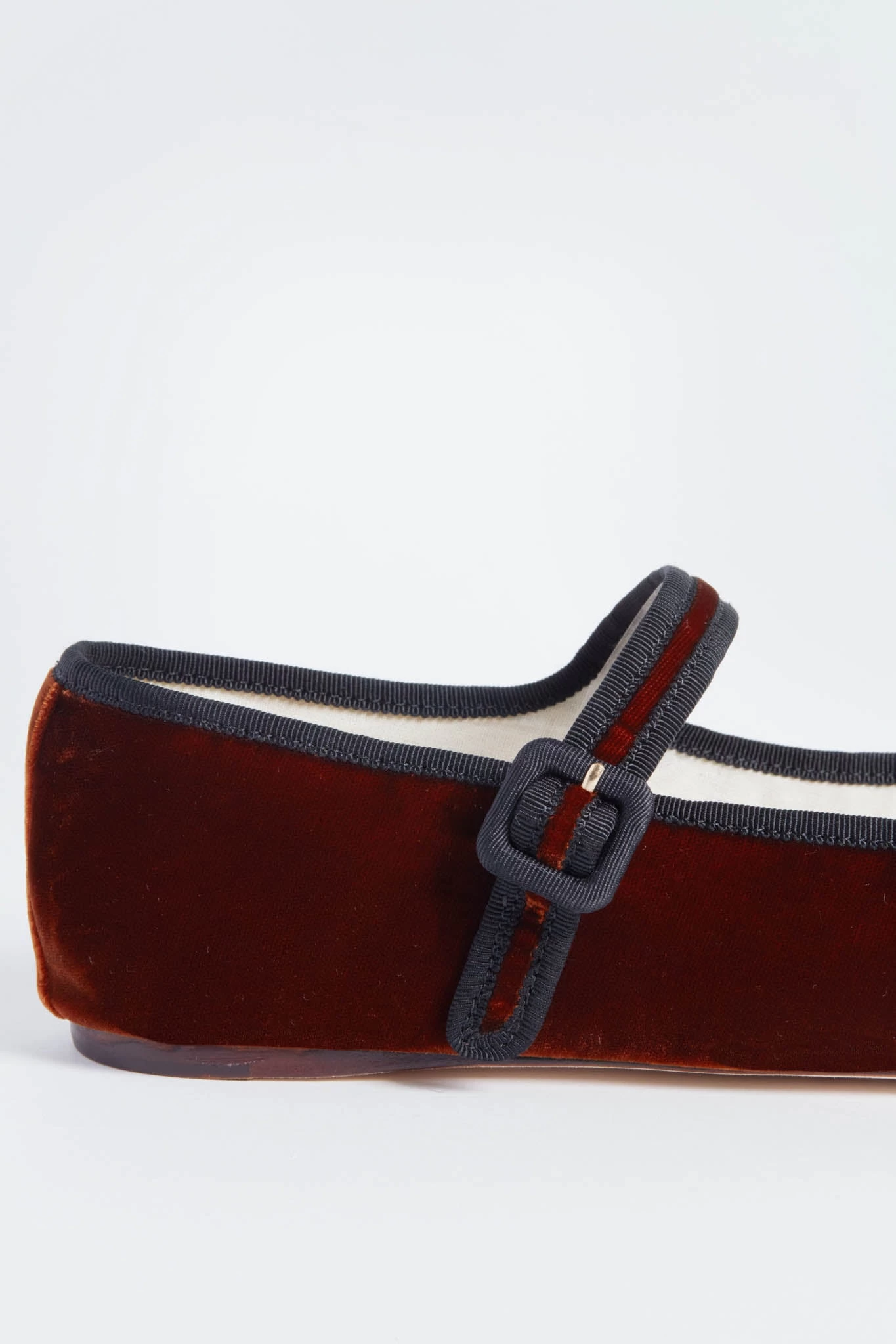 We love the on-trend yet sweet silhouette of the Sienna Velvet Chiara Mary Janes. Beautifully crafted in a rich, terracotta hue with delicate piping, these flats can elevate any outfit. Featuring an adjustable upper foot strap for the perfect fit and a padded footbed for all day wear, these shoes are great for running errands and everyday adventures alike. Style with your favorite denim, a button-down, and a blazer for a polished look, or with a cozy blazer and leather leggings for a comfy yet cute styling!
