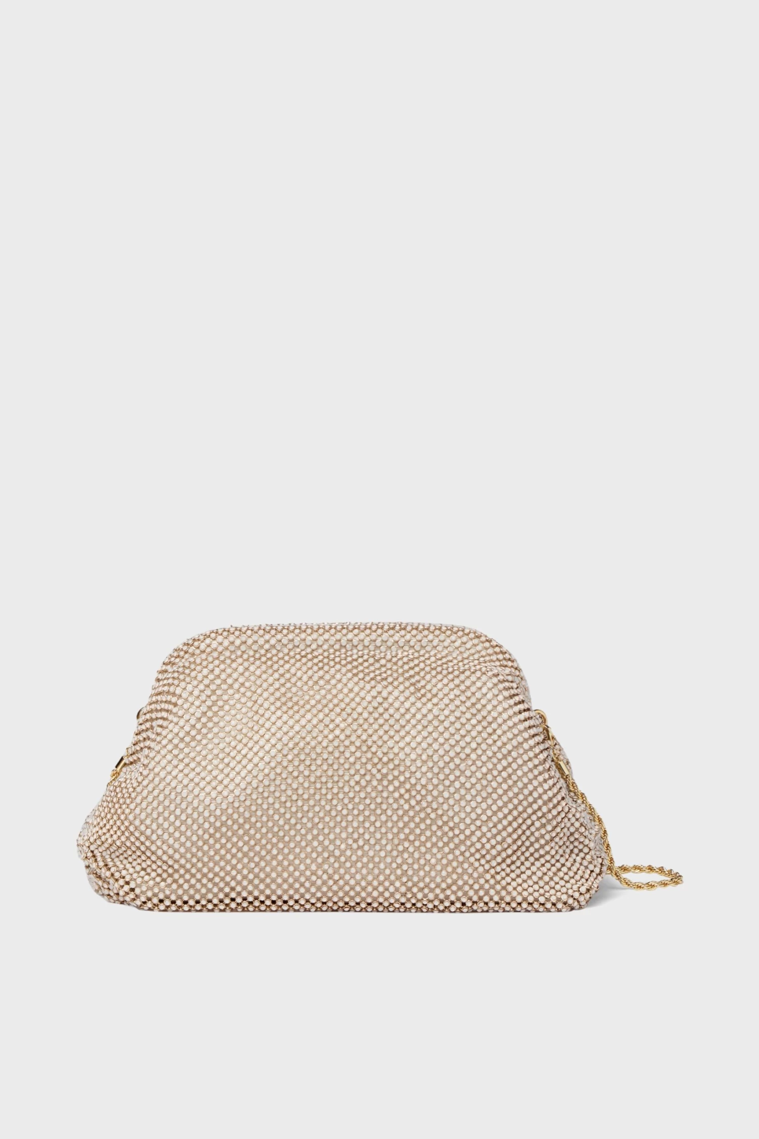 Add the perfect dose of sparkle to any outfit with the White Opal Doreen Clutch. Made from diamanté mesh, this style features a removable twisted gold metal chain strap for versatile carrying options, a frame closure to keep your essentials secure, a full interior lining, and a slip pocket inside. Complete your event-ready look with this bag for endless compliments, or carry it for a night out when you want a touch of shine!