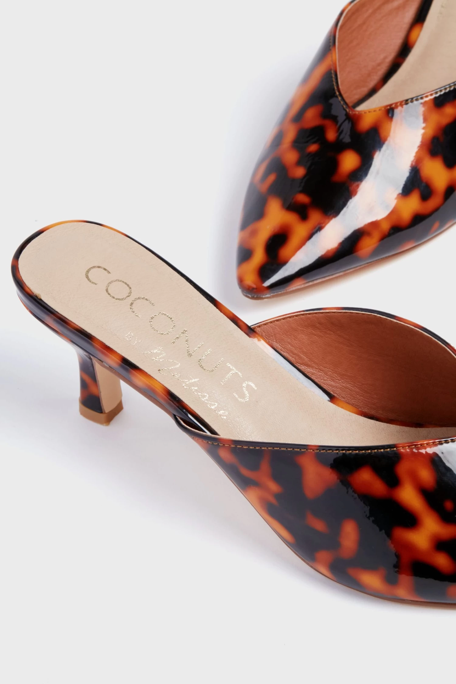 A classic kitten heel provides a poised touch for a pointed toe pump! Finished with patent tortoise vegan leather, the Tuckernuck exclusive Ojai Slides are an effortless slip-on silhouette you’re sure to reach for on repeat. Easy to wear all year long, we are wearing these every chance we get, from desk to drinks and everywhere in between!
