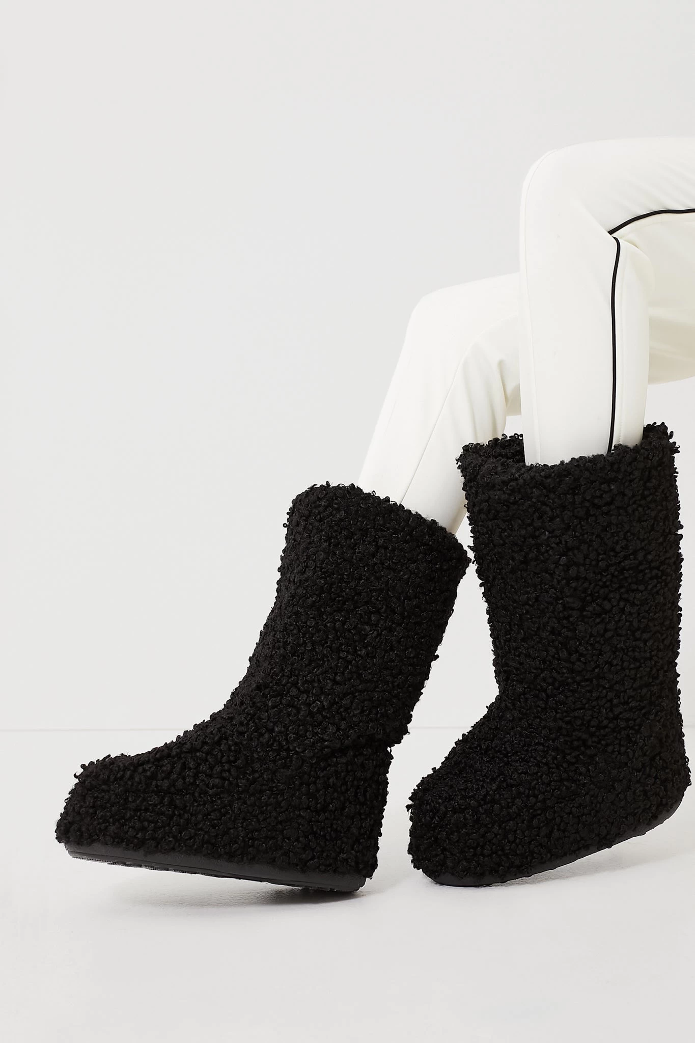 A tactile take on the Icon boot: faux sheepskin adds dimension to the laceless, minimalist silhouette. Fuse that with padded insulation, suction pads and a water-repellent coating, and the result is otherworldly.