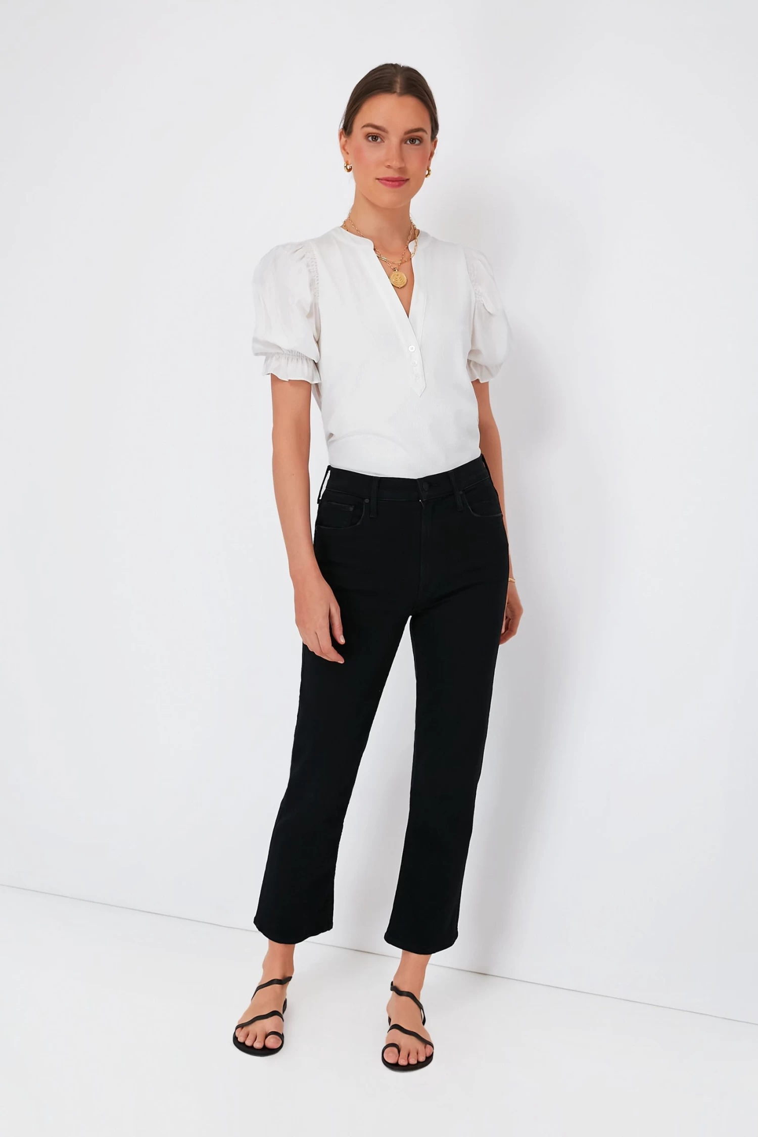 Pleading the fifth. The Not Guilty High Waisted Rider is the perfect high rise straight leg jean with an ankle-length inseam and a clean hem. Cut from comfortable stretch denim, you’ll be rocking this dark pant all year long. From school drop-offs to happy hours, these classics will be your go-to. Keep it casual with sneakers or dress it up with heels and a statement blouse.