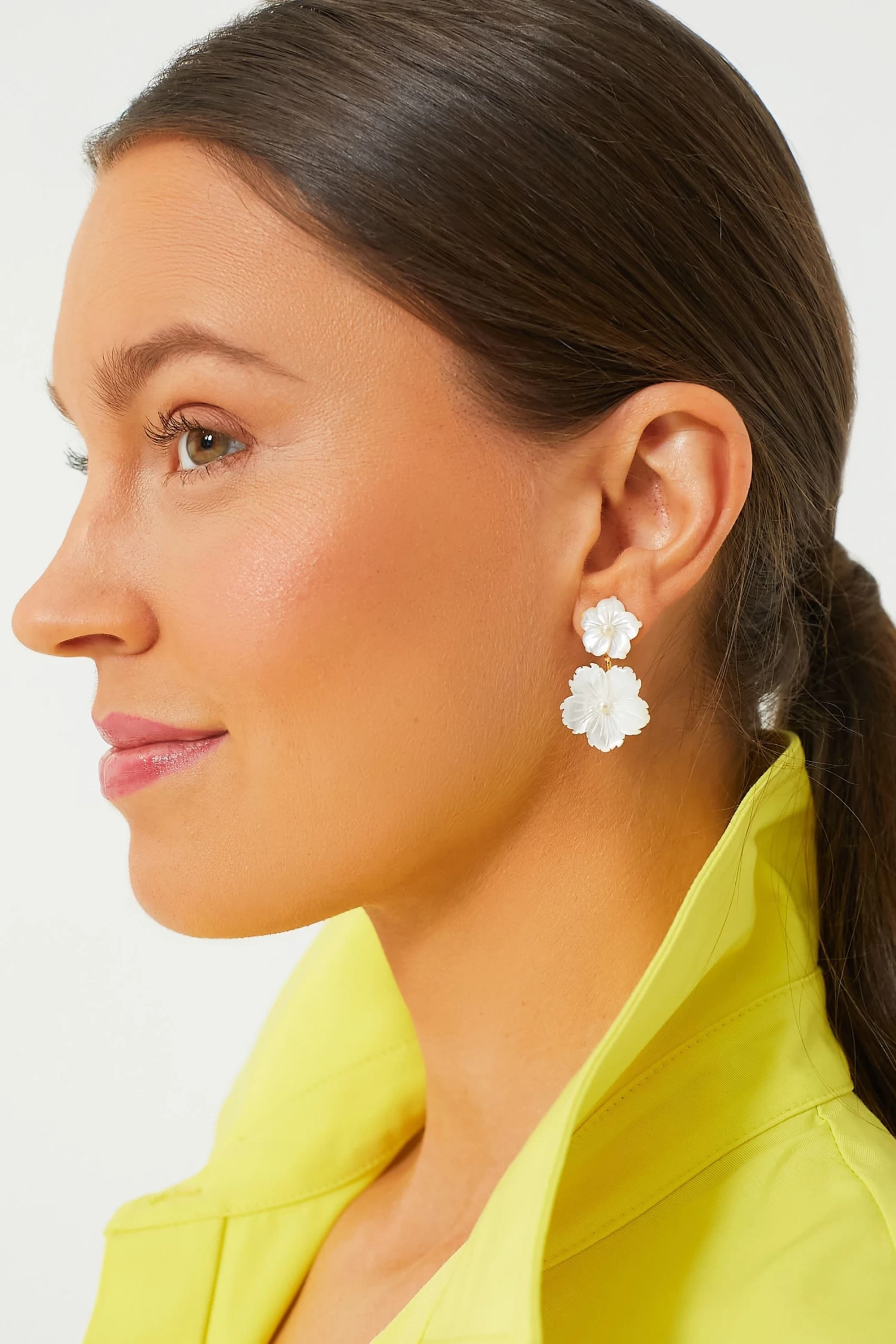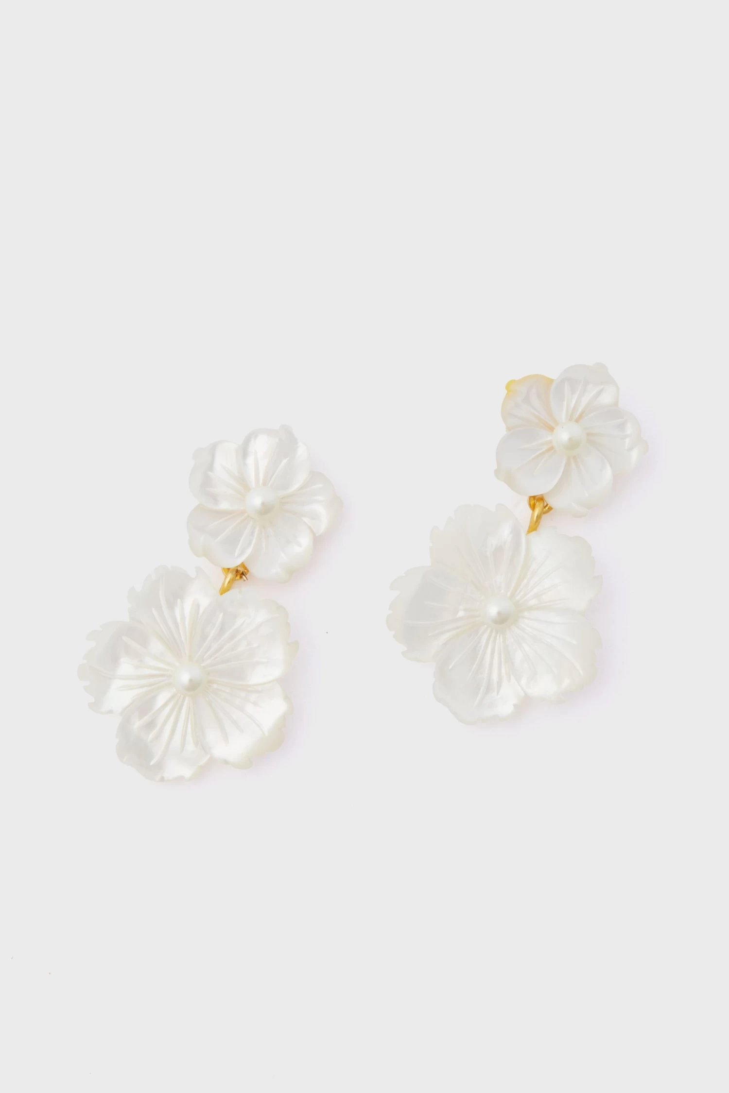 The Mother of Pearl Tibby Earrings are pure elegance. A double-flower drop silhouette with intricate petals and a delicate pearl in the center of each, these chic beauties will transform your look. Pair with maxi dresses for spring events, or with a simple white blouse to dress it up.