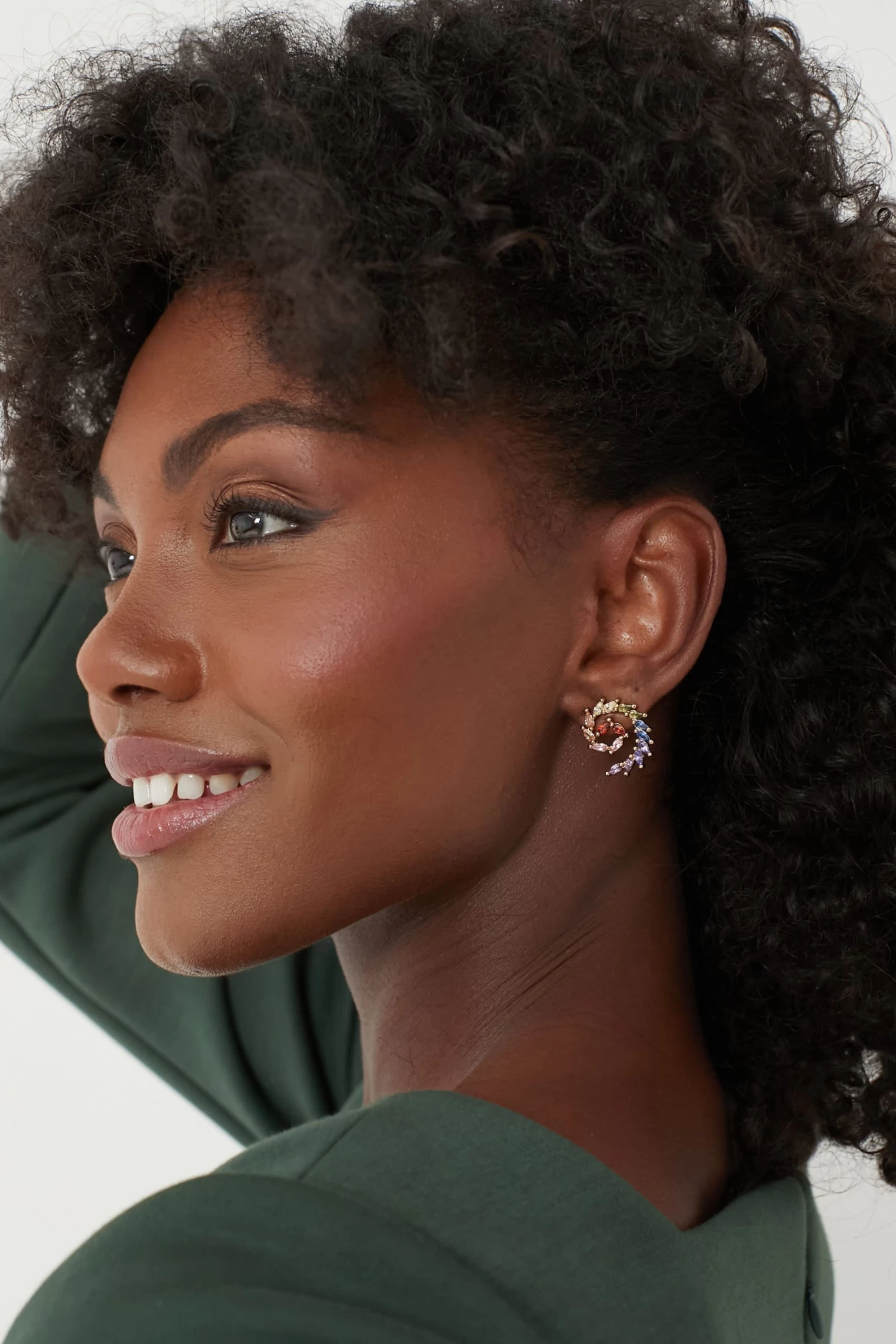 We are loving the subtle yet eye-catching Multi Pascal Crystal Earrings. These artful, multicolored crystal studs are created in a chic swirl with sleek and modern appeal. The rainbow effect makes these easy-to-match and versatile- we are pairing this with a plain tee and denim or with a mini dress and metallic heels.Β
