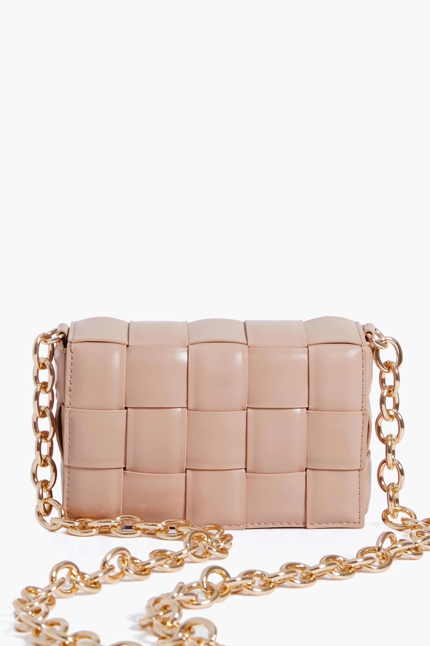 The Natural Holden Bag is a sleek, wear-everywhere crossbody with a modern twist. Woven detailing in a wearable neutral shade will elicit compliments galore, and a gold-toned chain strap will add a finishing touch to any outfit. From denim and a basic tee to a little black dress, this style is versatile enough to do it all!