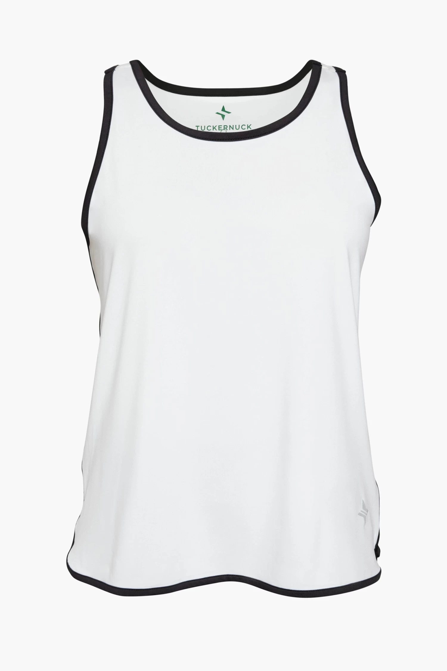 Business in the front, breezy in the back. The cane-mesh racerback tank is lightweight, quick to dry, and soft to touch. A fun take on the classic tennis whites, this top plays well from running to hiking to yoga to napping.