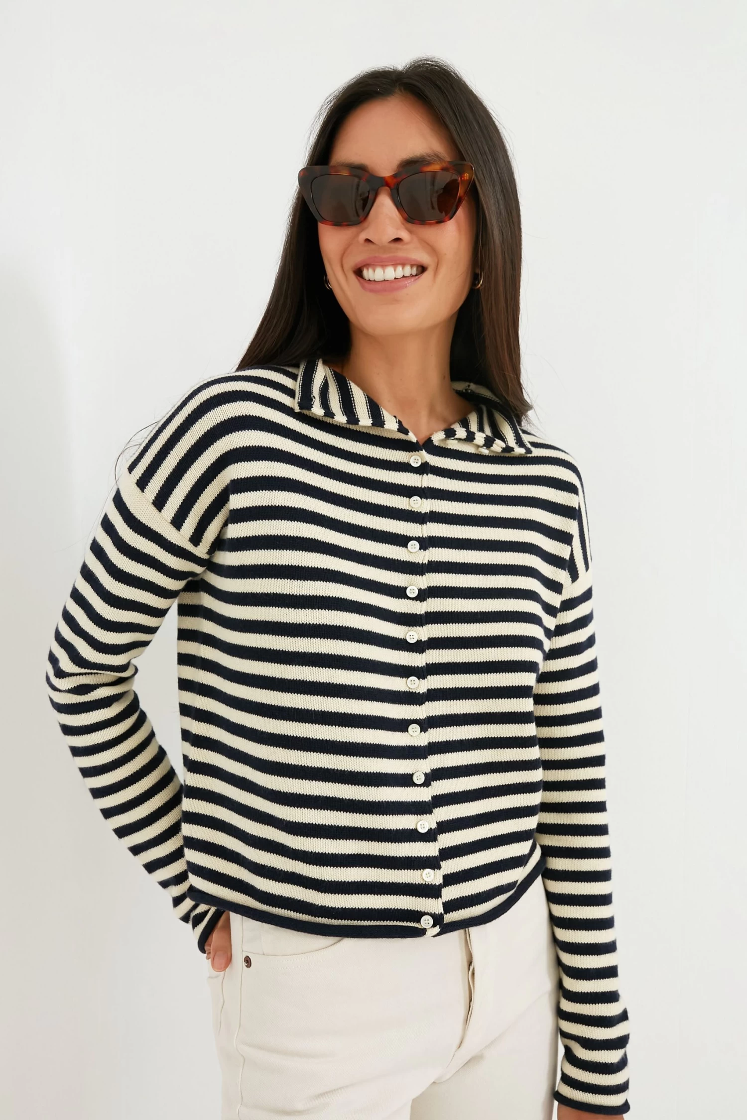 Classic and ultra-chic, the Navy Ivory Taylor Cardigan deserves a place in any wardrobe. With thin pinstripes for a touch of timeless style, as well as a spread collar and dropped shoulders for a cozy and casual feel, you’ll be wearing this everywhere from school drop-offs to meetings in the office to cute lunch dates. Pro tip: Style it over a tee and tie it around your shoulders if it’s a bit warm or button it up for a snuggly vibe on chilly days.