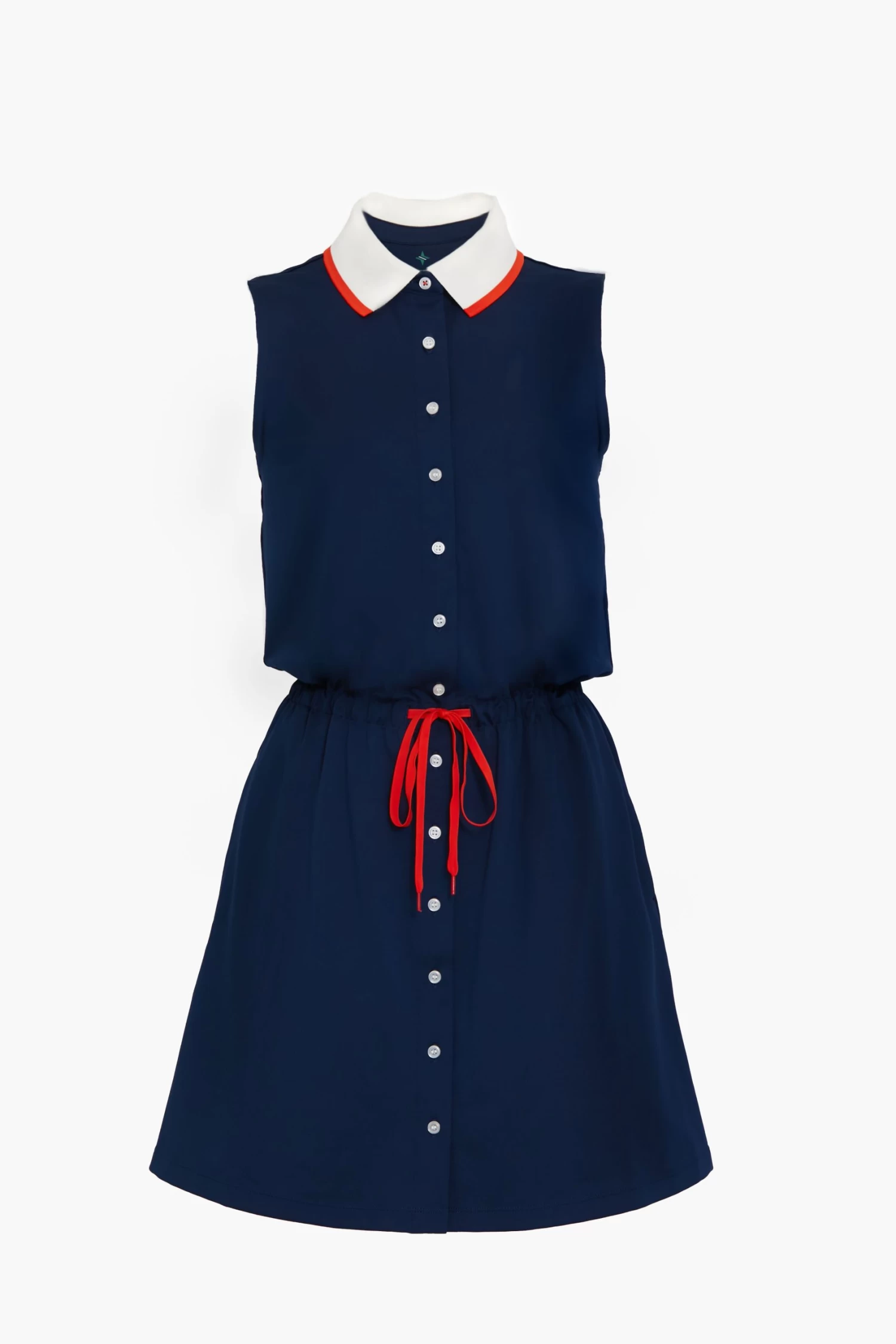 The Navy Sleeveless Alcott Golf Dress will take you from the course to the carpool line with ease and style. Pair with bike shorts for peace of mind while moving and grooving from activity to activity. Soft to touch and filled with details, this throw-on-and-go mini is sure to be played on repeat with its no fuss but all the frills style.