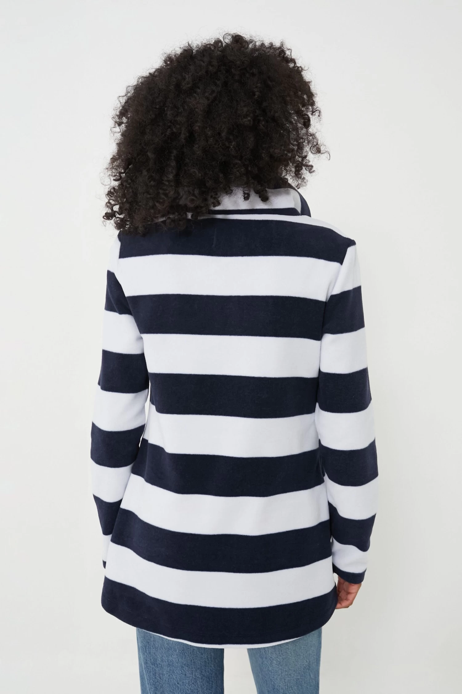 An update to one of our favorite classics, the Navy White Wide Stripe Prospect Pullover stands out with its oversized stand-up collar. Featuring a convenient half-zip closure and a cozy relaxed fit, this piece has got you covered this season. Beautifully crafted from a super-soft non-iron vello fleece, this sweater is perfect for layering over your athleisure for a crisp walk in the park or with denim and sneakers to grab a latte. You cannot go wrong!ย