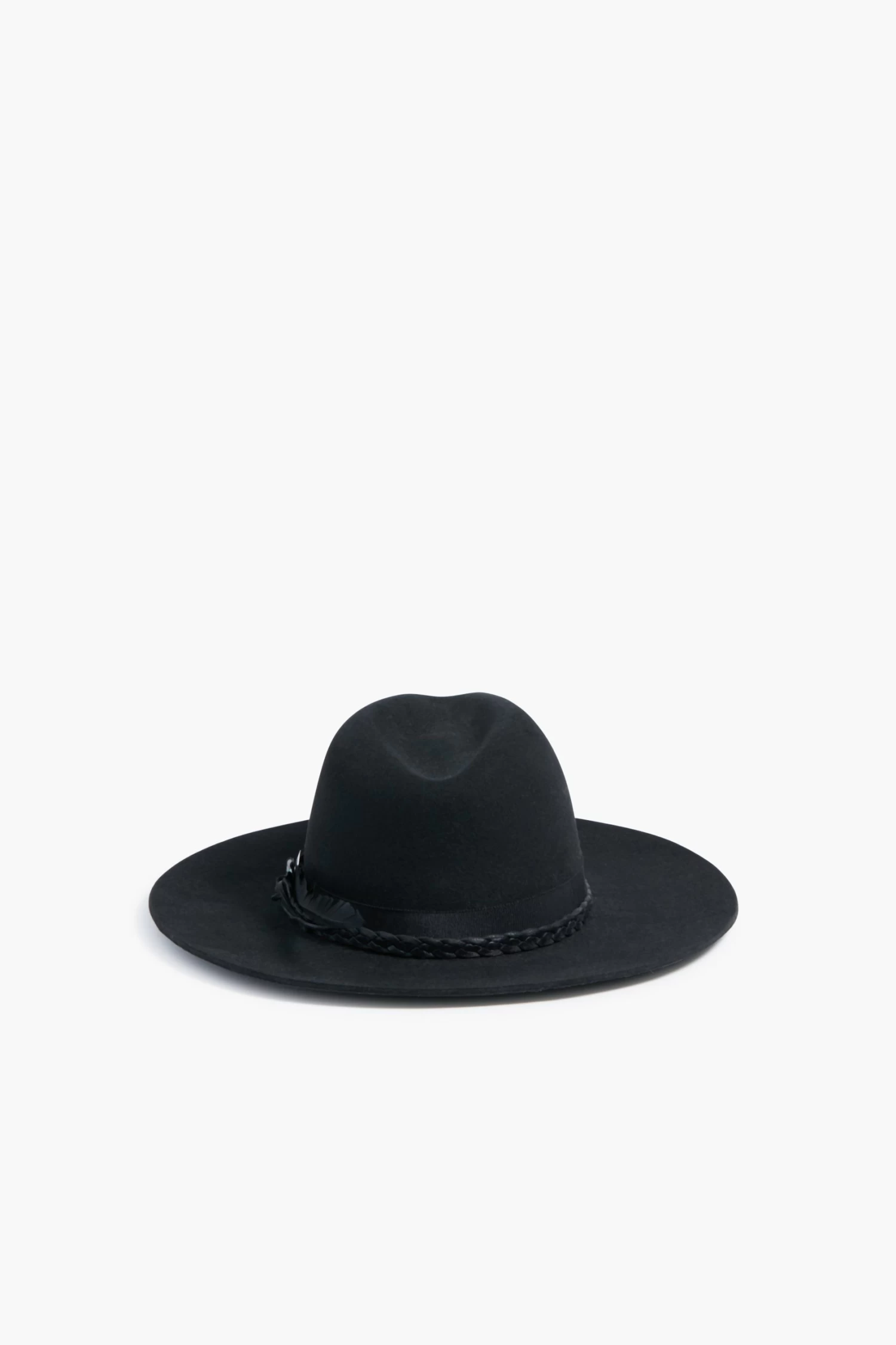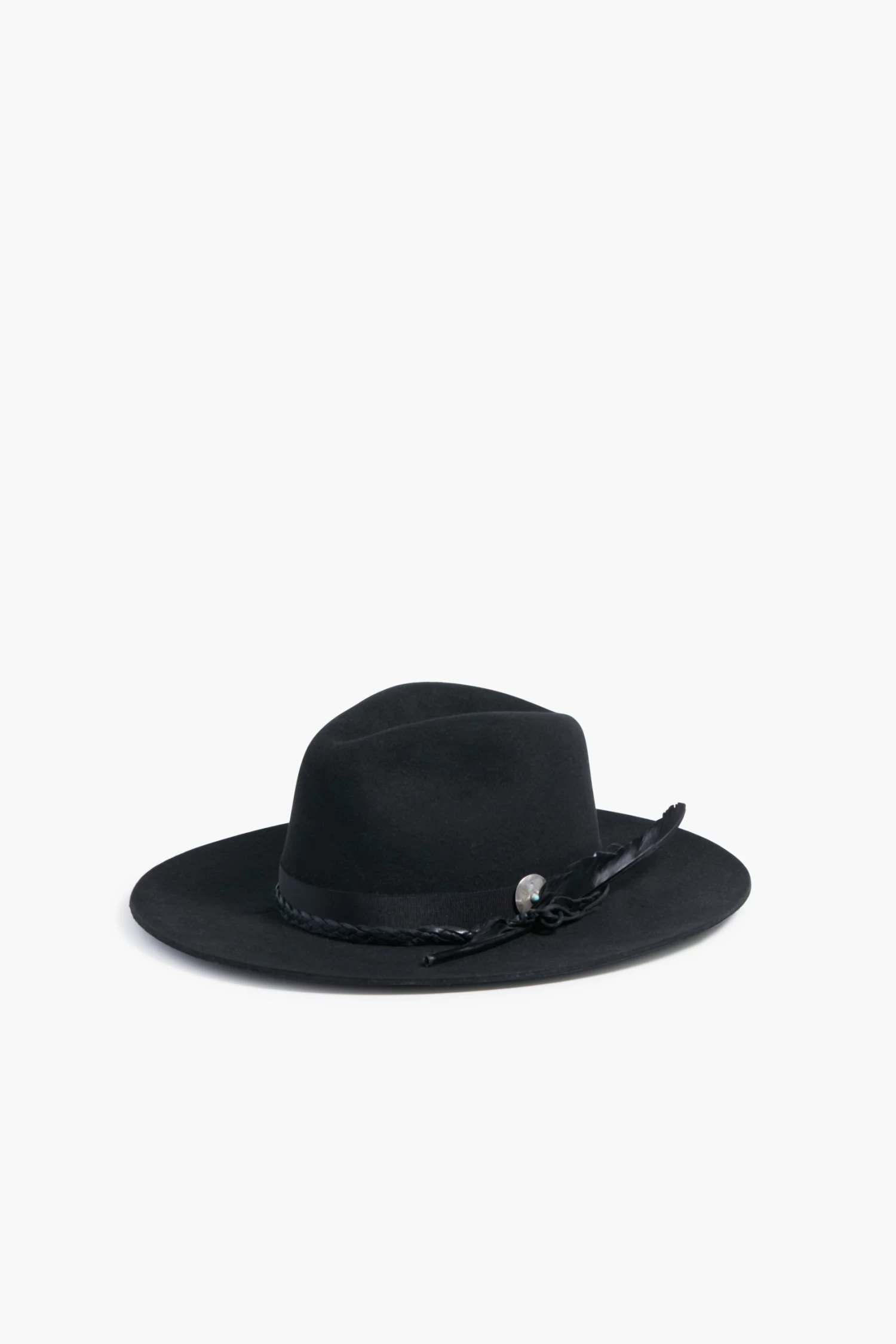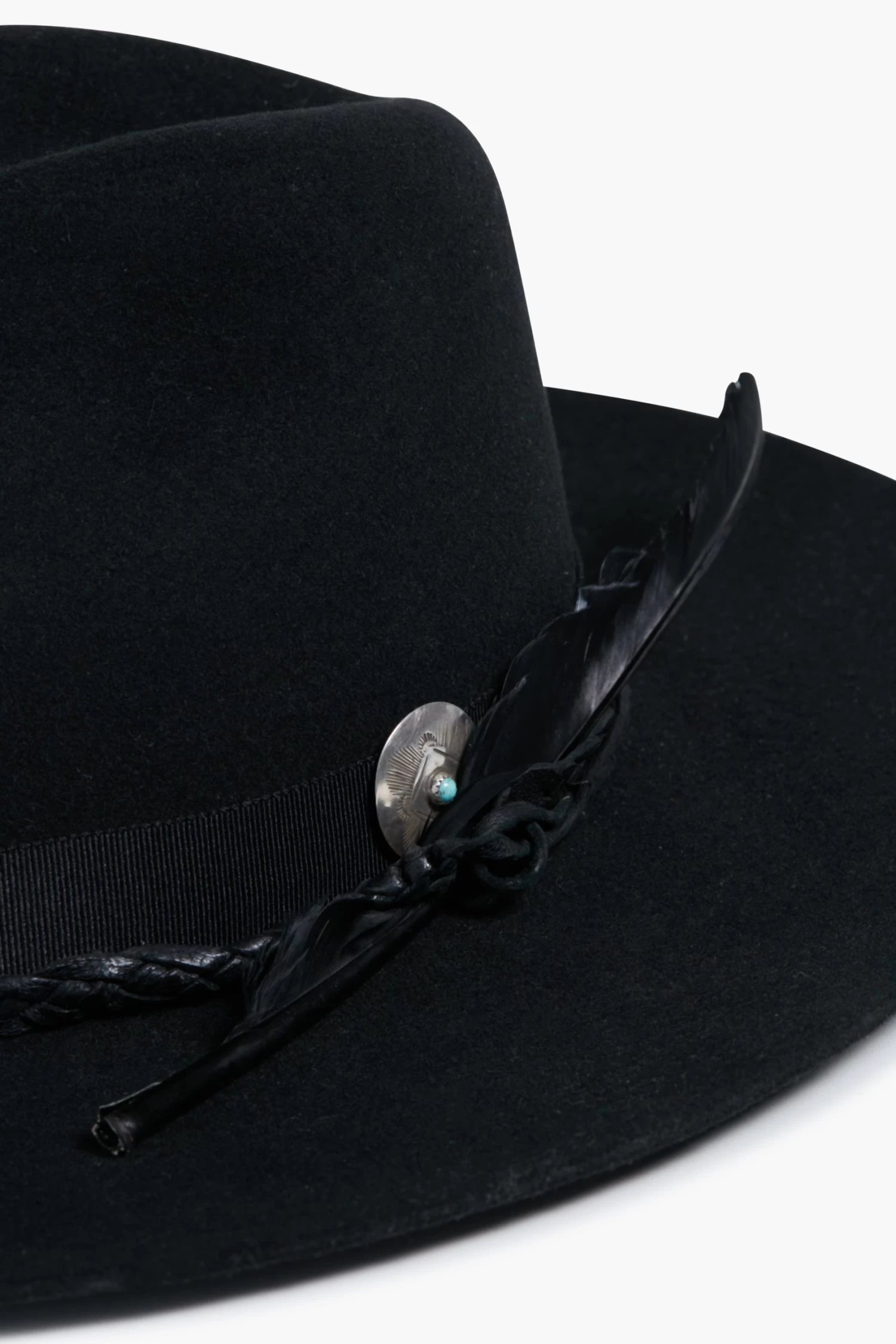 Make a statement in the Once Again Hat. A classic fedora silhouette updated with a luxe black wool composition, this incredible accessory is made extra-special by the addition of a sterling silver medallion and pheasant feather detail at the side. Pair with denim and your best boots for outdoor adventures, or pair it with a flowing maxi for a boho-chic look.