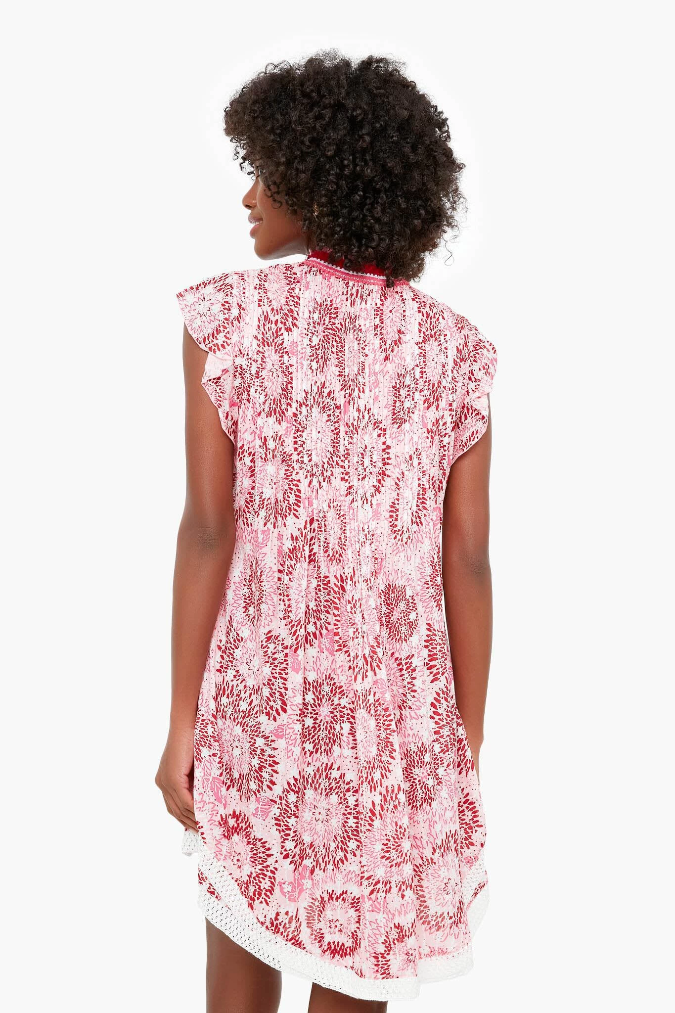 The Pink Sunflower Mini Dress Sasha is made from organic fabric with a romantic print composed of delicate, petite flowers with a chine effect. Featuring a V-neckline with fringes, butterfly sleeves, and a pleated skirt with lace through the hem, this warm-weather caftan pairs with everything from bare feet to sandals!