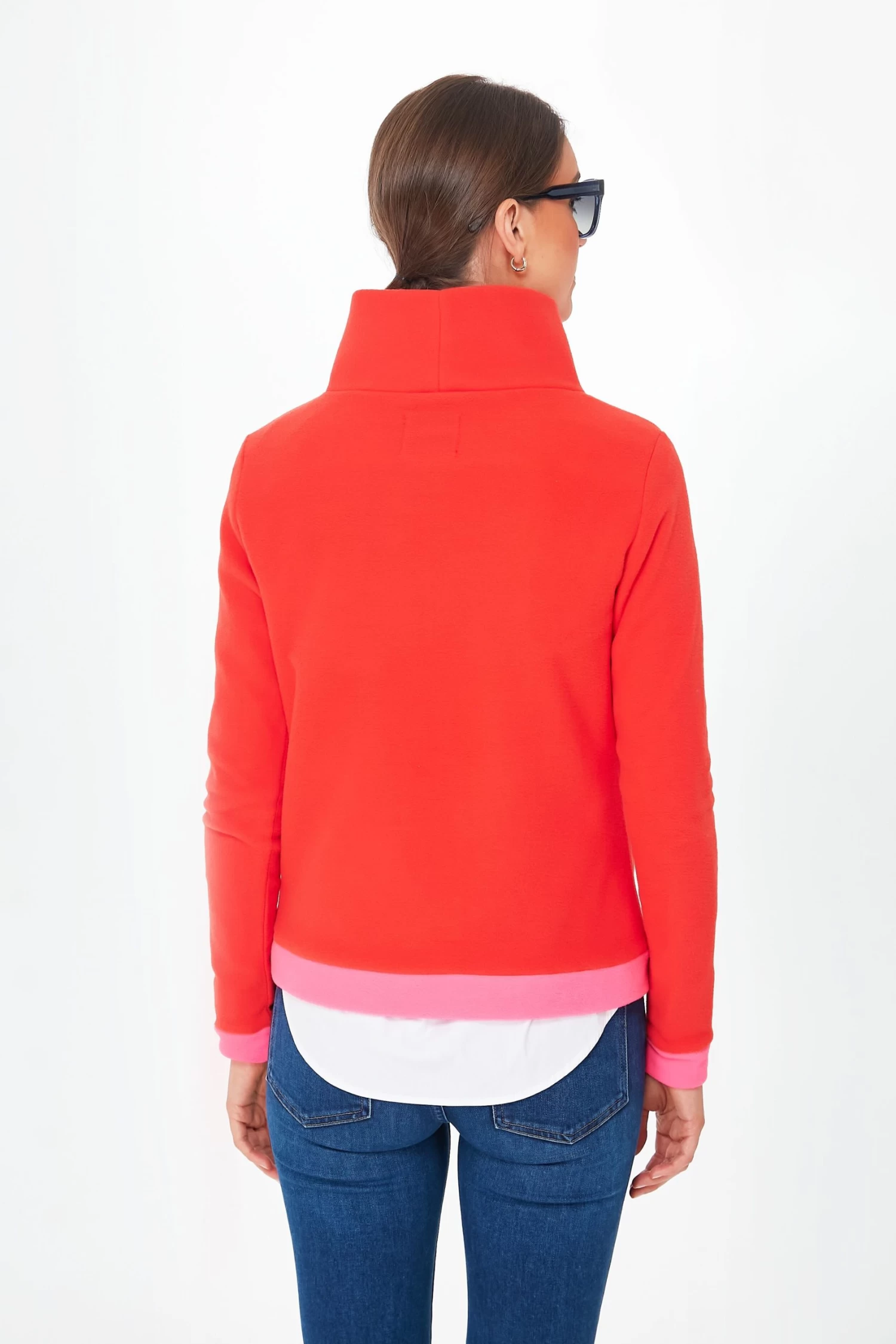 The coziest layer that we love to wear anywhere and everywhere, the Poppy Red and Neon Pink Colorblock Park Slope hits just below the waist for a perfect fit. Featuring a banded detail and made from an ultra-soft non-iron vello fleece, we can promise you’ll want to wear it everyday. Throw it on with leggings or joggers post-workout or style with denim and sneakers for a warm weekend look.