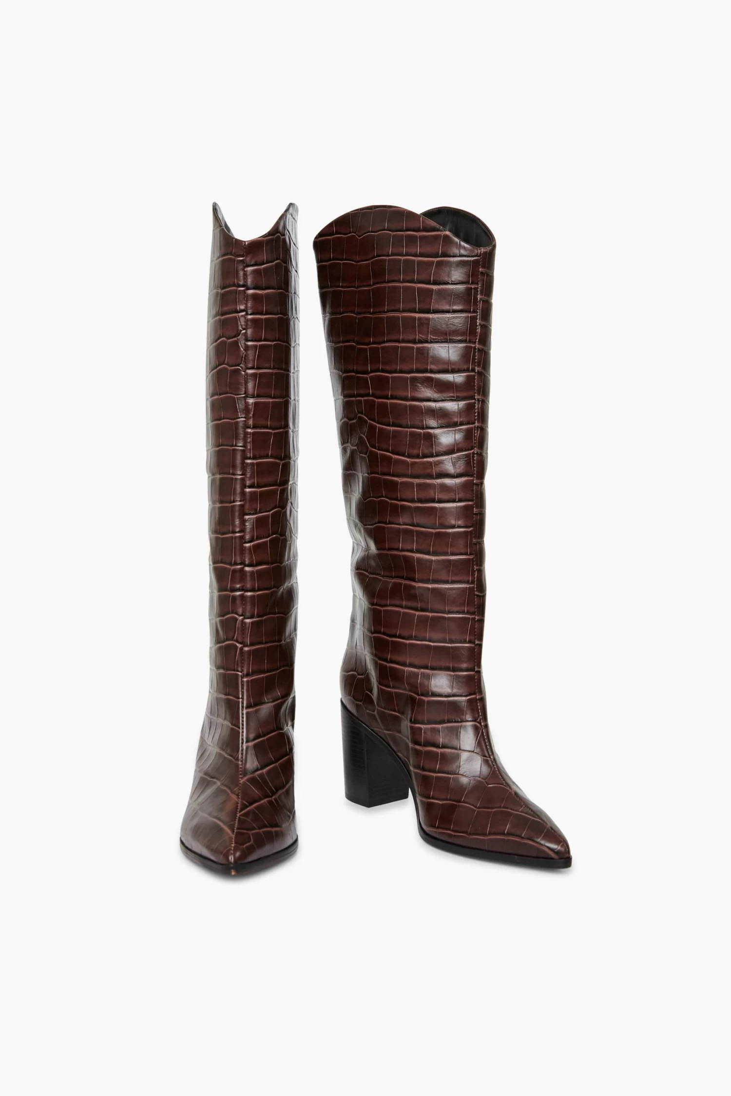 The Dark Chocolate Maryana Block Heels are effortlessly cool boots made from a rich brown, croc-embossed leather. Pairing perfectly with basically everything you own, this fabulous footwear style has a chunky heel for a mix of height and comfort, and a knee-height shaft that is both endlessly wearable and easy to style. You’re sure to be reaching for these on repeat — they look great with everything from denim to dresses, and don’t forget to add a cozy knit as the temperature cools for a classic, yet bold look.