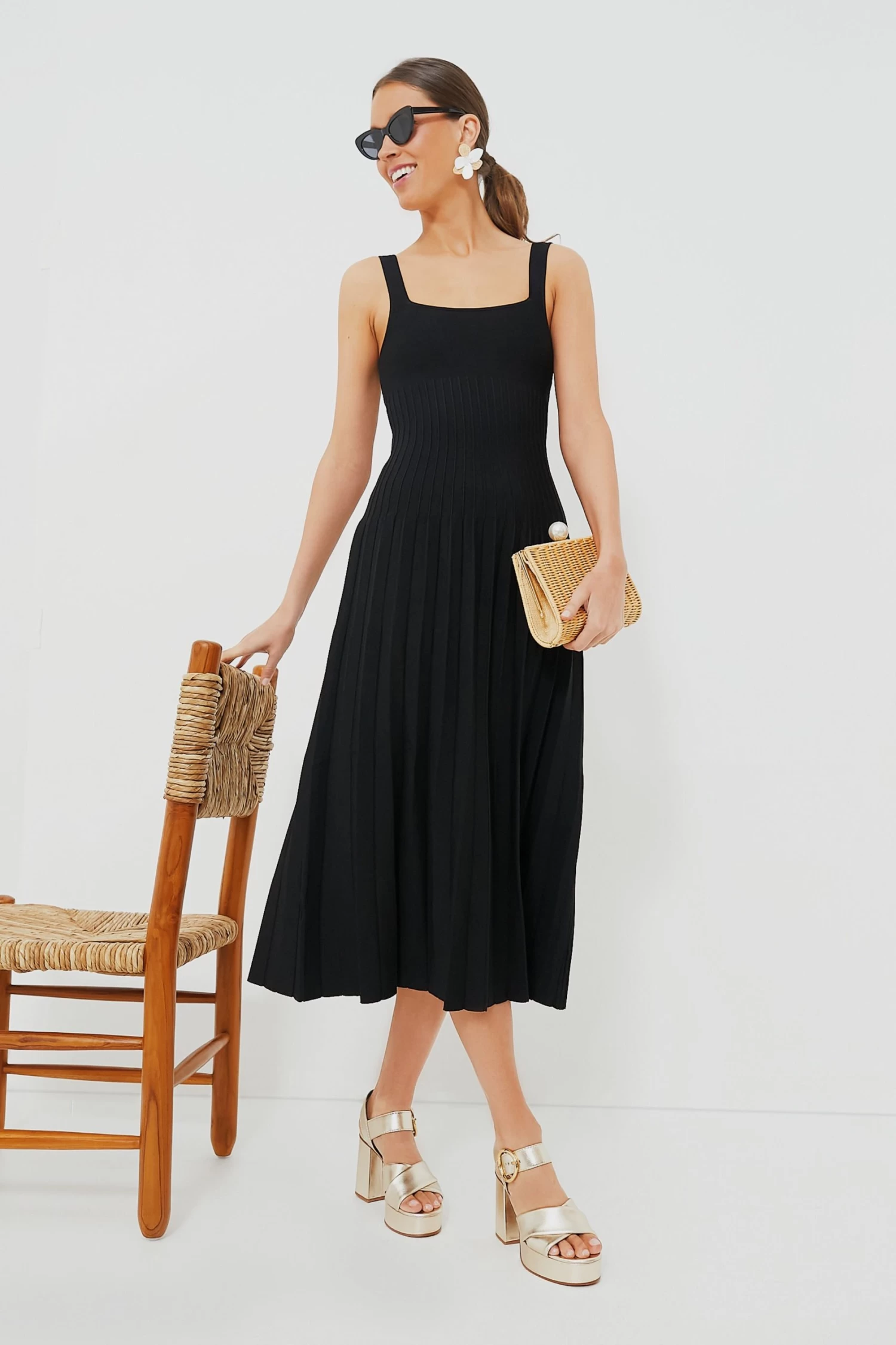 The Black Ellison Dress is elegant and sophisticated. Featuring a square neckline, bra-friendly straps, and ottoman stitch detailing at the waist, this compact knit midi offers a flattering, fitted shape through the waist which leads into a dramatic full skirt for a gorgeous silhouette. Turn all moments into memorable occasions, from wedding celebrations to cocktail parties, just add heels or sandals for a jaw-dropping look.