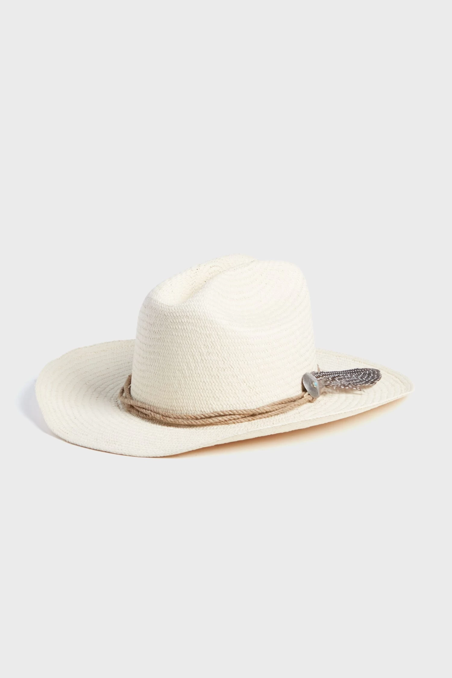 Hand-woven from Toquilla straw, the Sun in the Center Hat is made for bright days. An effortlessly cool shape is created from the combination of a tall crown, a wide brim, and a vintage rope trim with silver and feather details to add some flair, making this an accessory you’ll want to wear on repeat. Style with your best denim and boots for outdoor adventures, or pair it with a classic tee and gold hoops for an eccentric everyday styling.