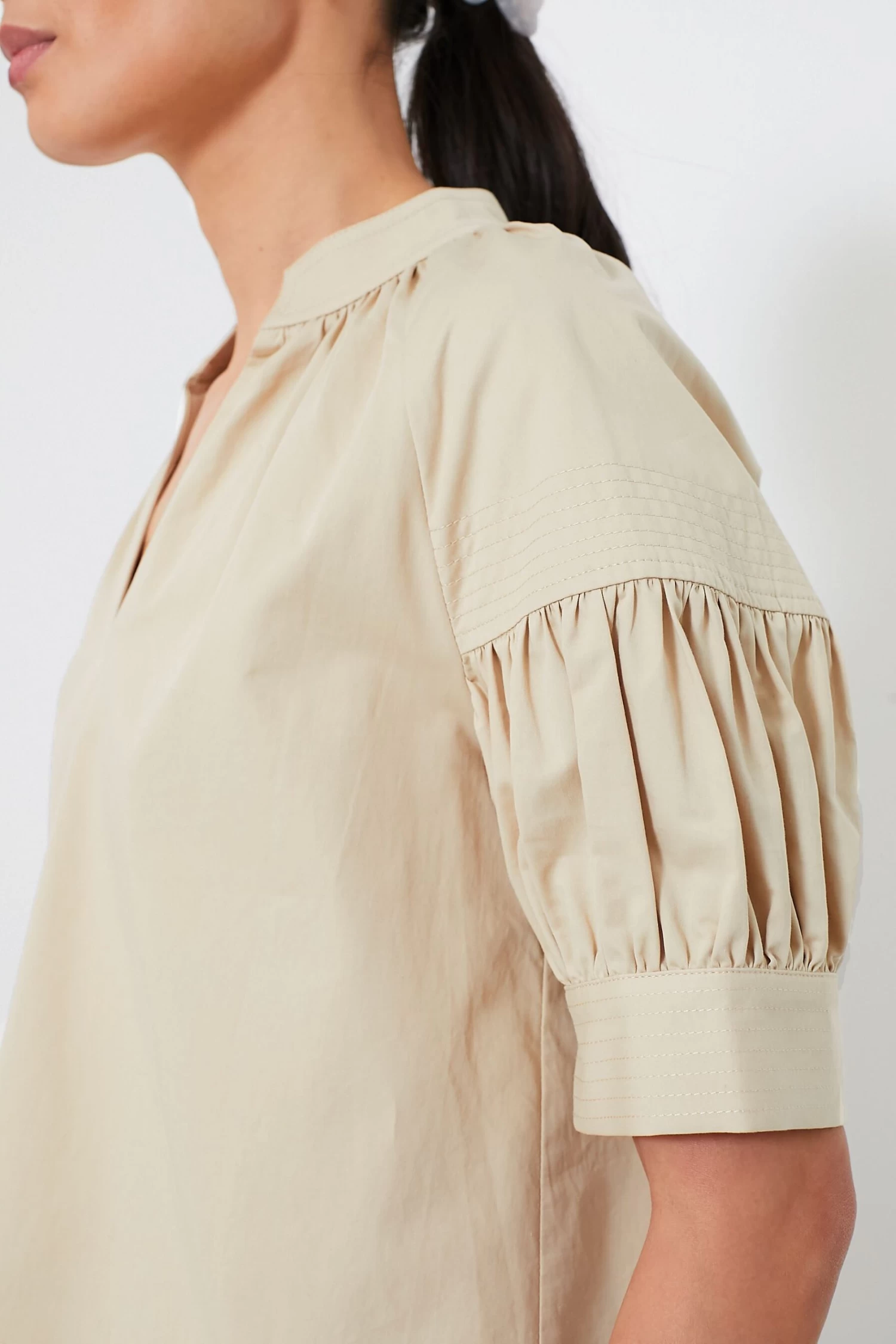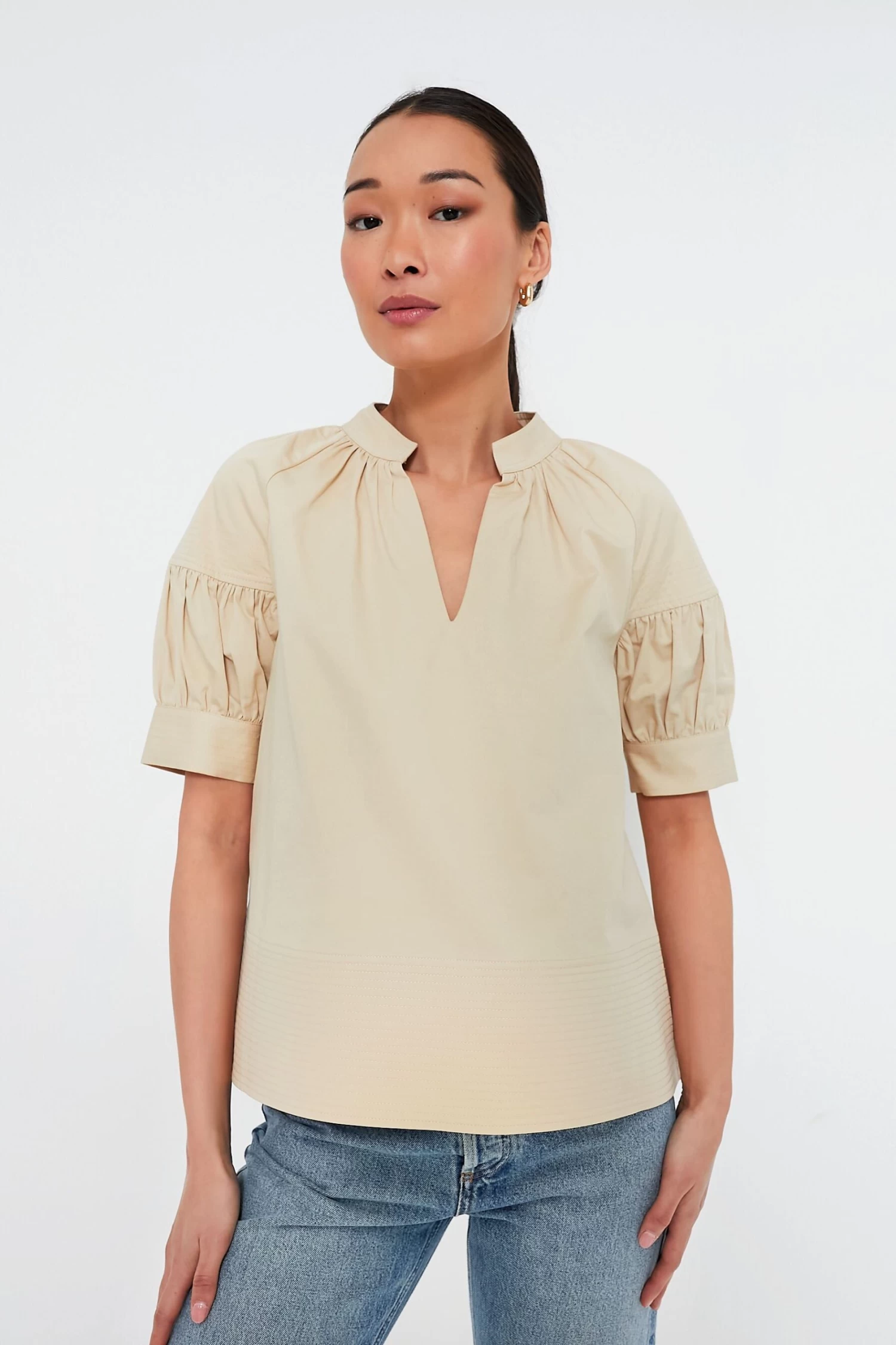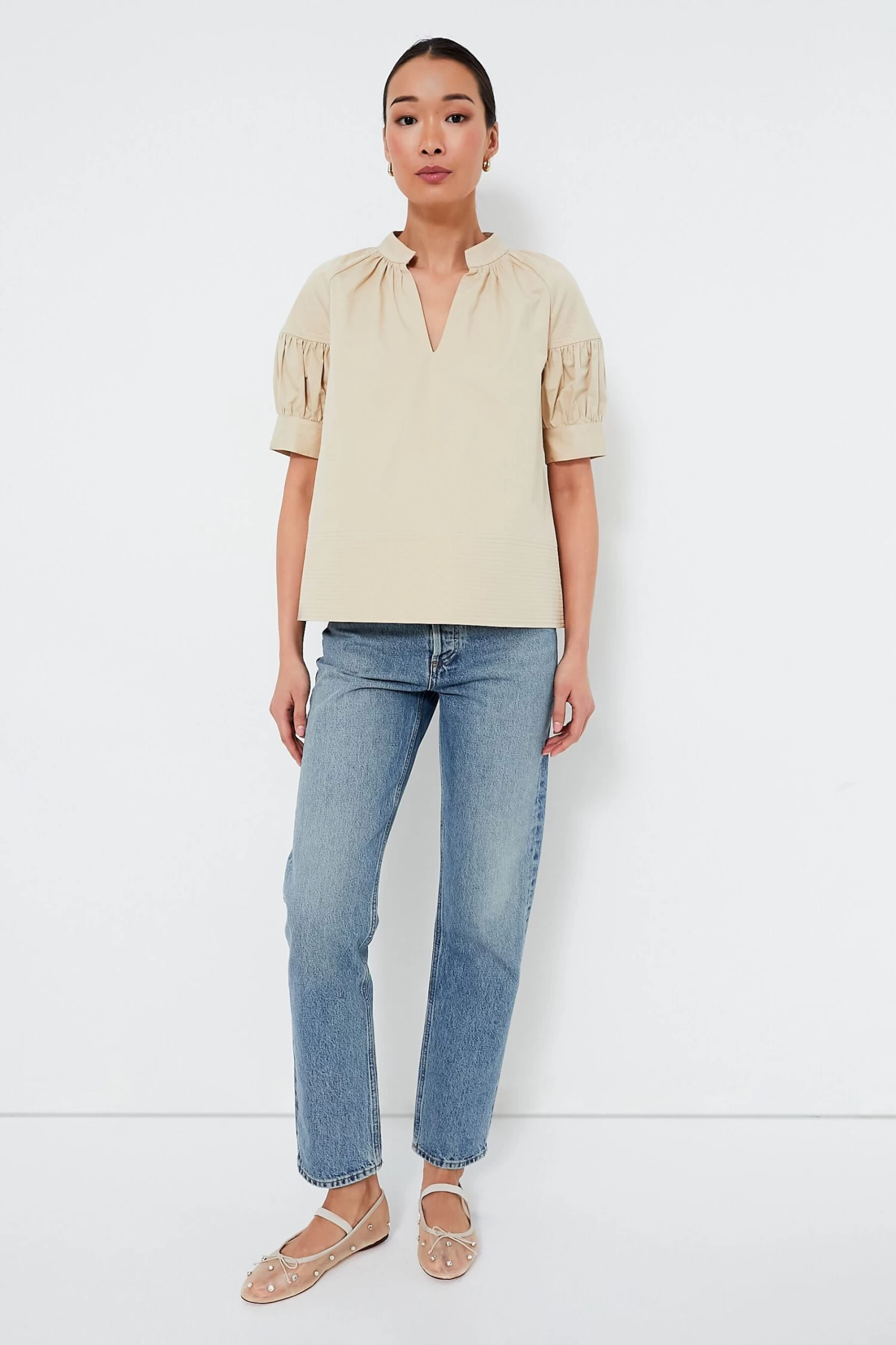 A crisp and classic top never fails, so meet your new closet staple — the Tan Ruthie Blouse. Featuring a band collar with a V-neckline, short puff sleeves, and trapunto stitching on the hemline, this polished piece is not short on details. Pair with denim of all colors, flats or heels, statement earrings or gold accessories, the styling options are truly endless!