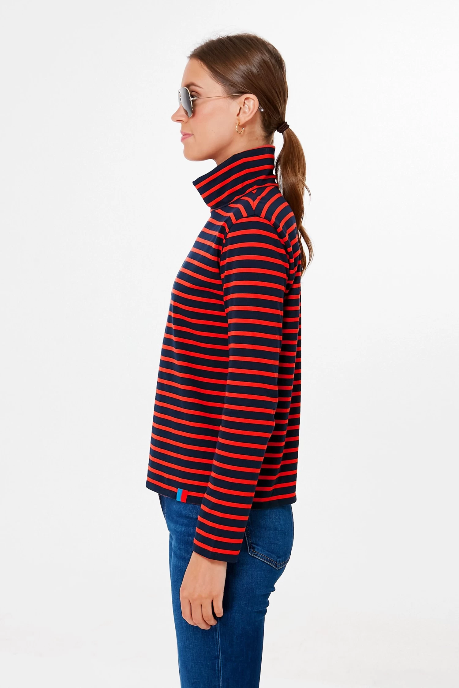 The Turtleneck Navy Poppy bases its design on the styles worn by Picasso and Brigitte Bardot, with the cozy addition of a high neckline. Featuring a straight, boxy cut, this is fitted perfectly for a feminine shape but loose enough for a relaxed look. Made from light and airy cotton, it is the perfect layering piece as the days get cooler, so try it under a cardigan for brunch, under a puffer coat for a walk in the crisp air, or on its own to curl up by the fire.