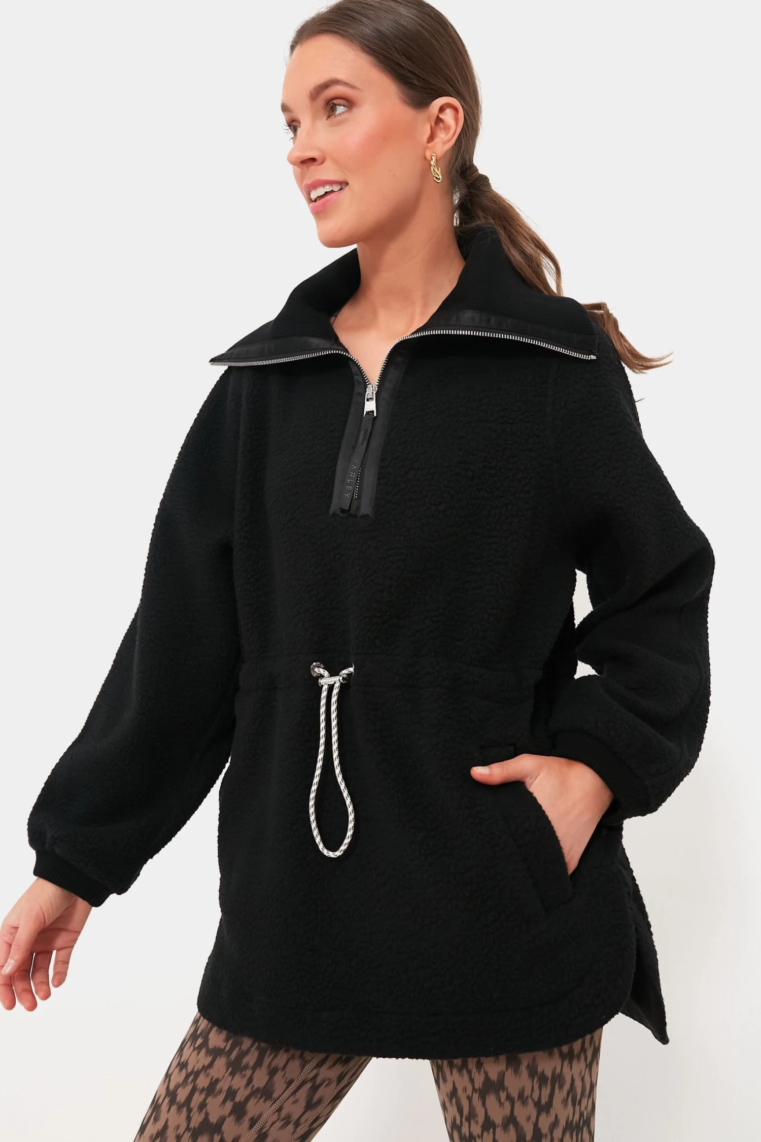 Meet the Black Parnel Half Zip Fleece: the ultimate in Alpine loungewear, effortlessly designed for layering over your base layers. Made from Varley’s soft and insulating Plush Borg Fleece, this half-zip pullover is longline and oversized. Its adjustable toggle waist allows for a customized fit, complemented by the elegance of a sateen-trimmed half-zip and ribbed cuffs. Pair with leggings and boots for the ultimate cozy ensemble!