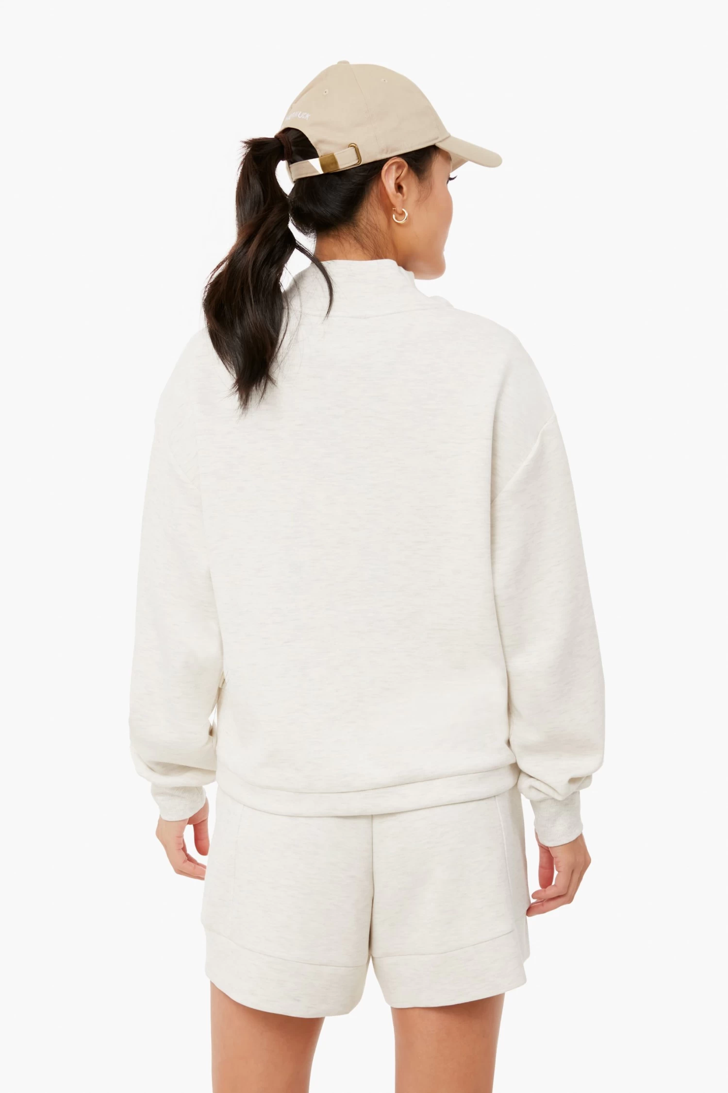 With an elegant cowl neck, and contemporary panel detailing, the oversized Betsy Sweat is made from soft and cozy lightweight fabric. Designed to take you from studio to street with style and ease, this timeless wardrobe staple boasts a drawcord hem for versatile styling. Add the matching shorts and slides for a utilitarian-inspired, cool-girl weekend look.