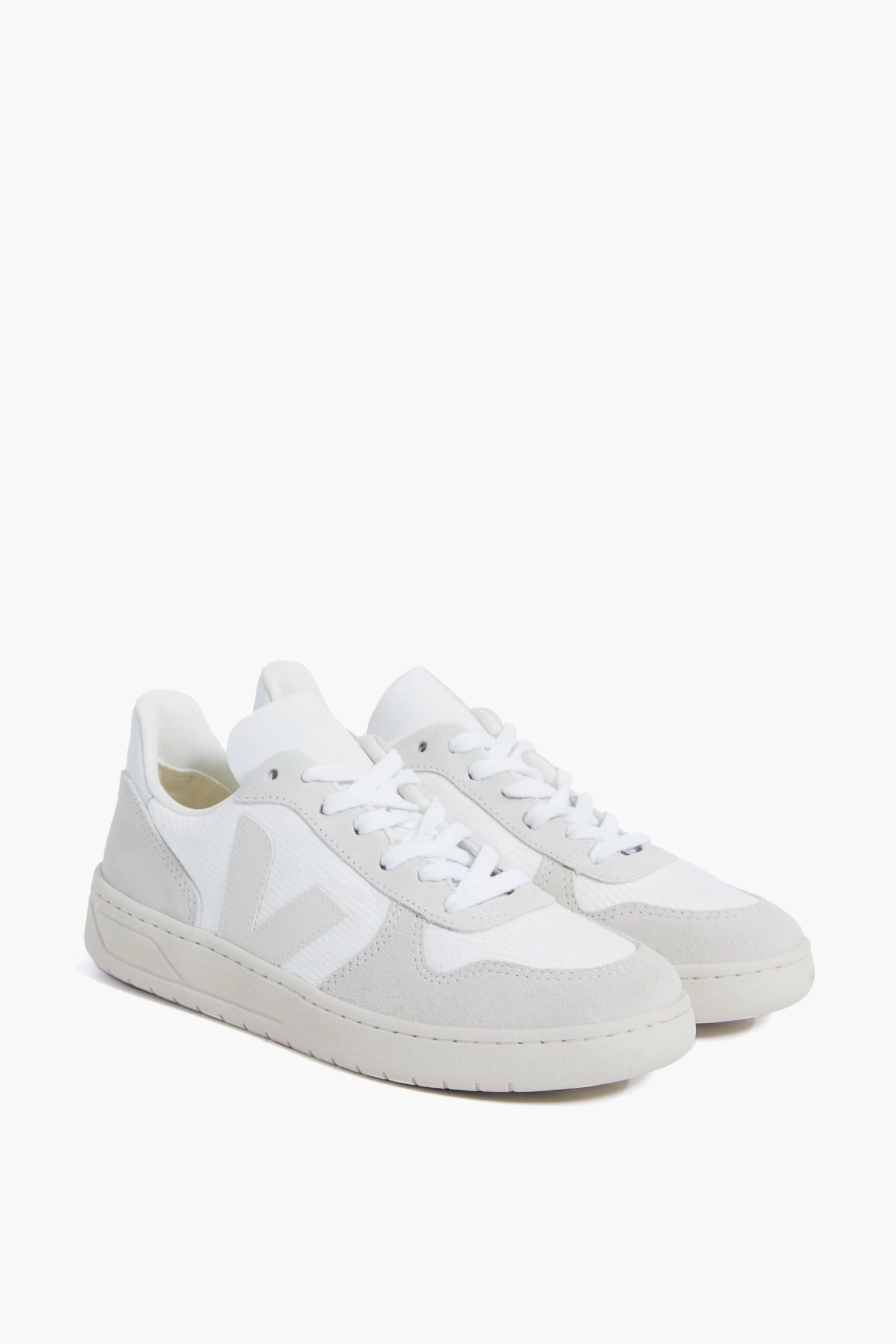 The White Natural Pierre V-10 Sneakers feature a neutral logo patch and heel, making them a subtle and wearable update to the classic white sneaker. This chic pair of tonal shoes is ultra-comfortable with a padded collar and a thick flat sole, so you will reach for these to complete nearly any outfit. We love to wear them from a quick coffee run to a long day of errands, or while wandering around a new city.