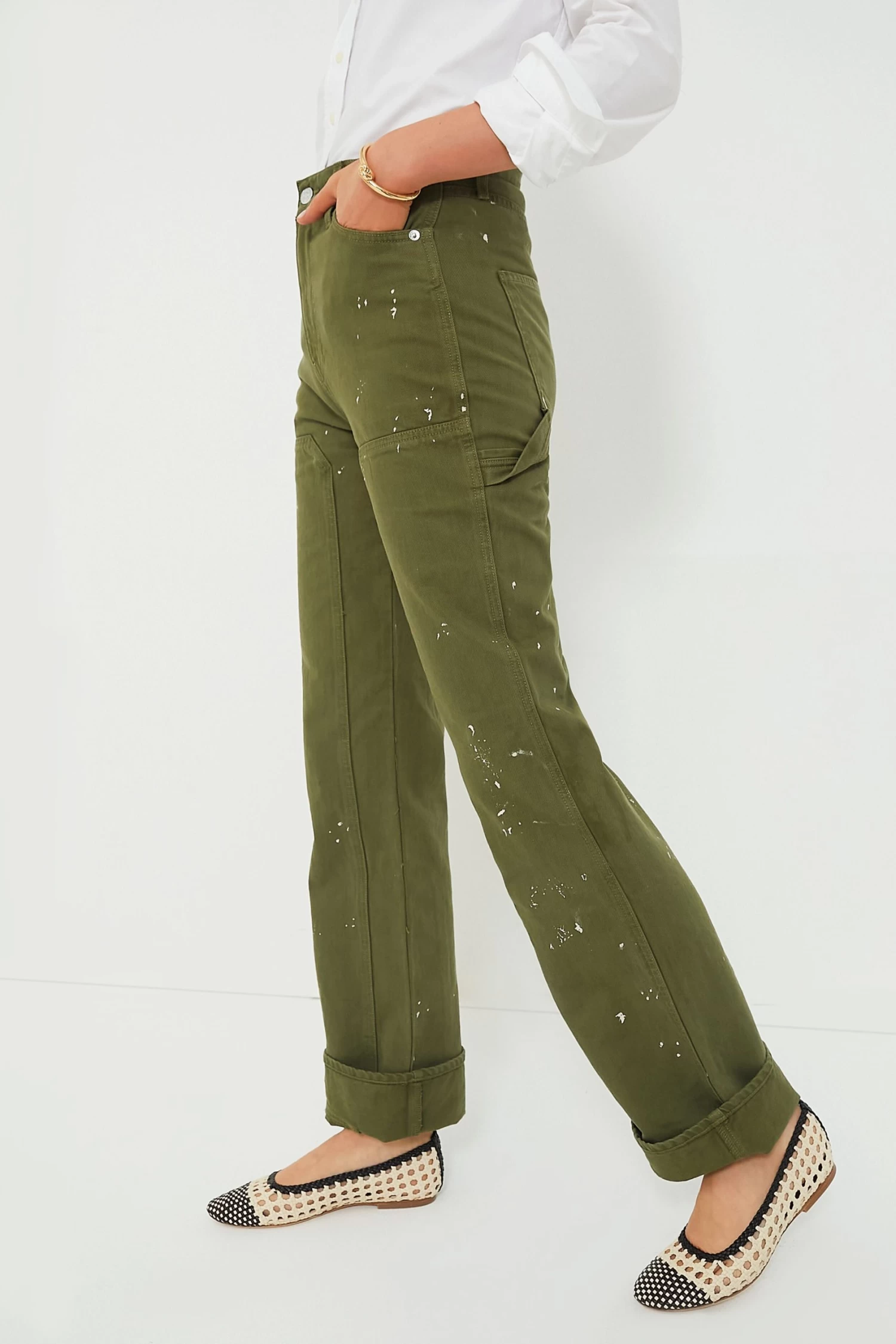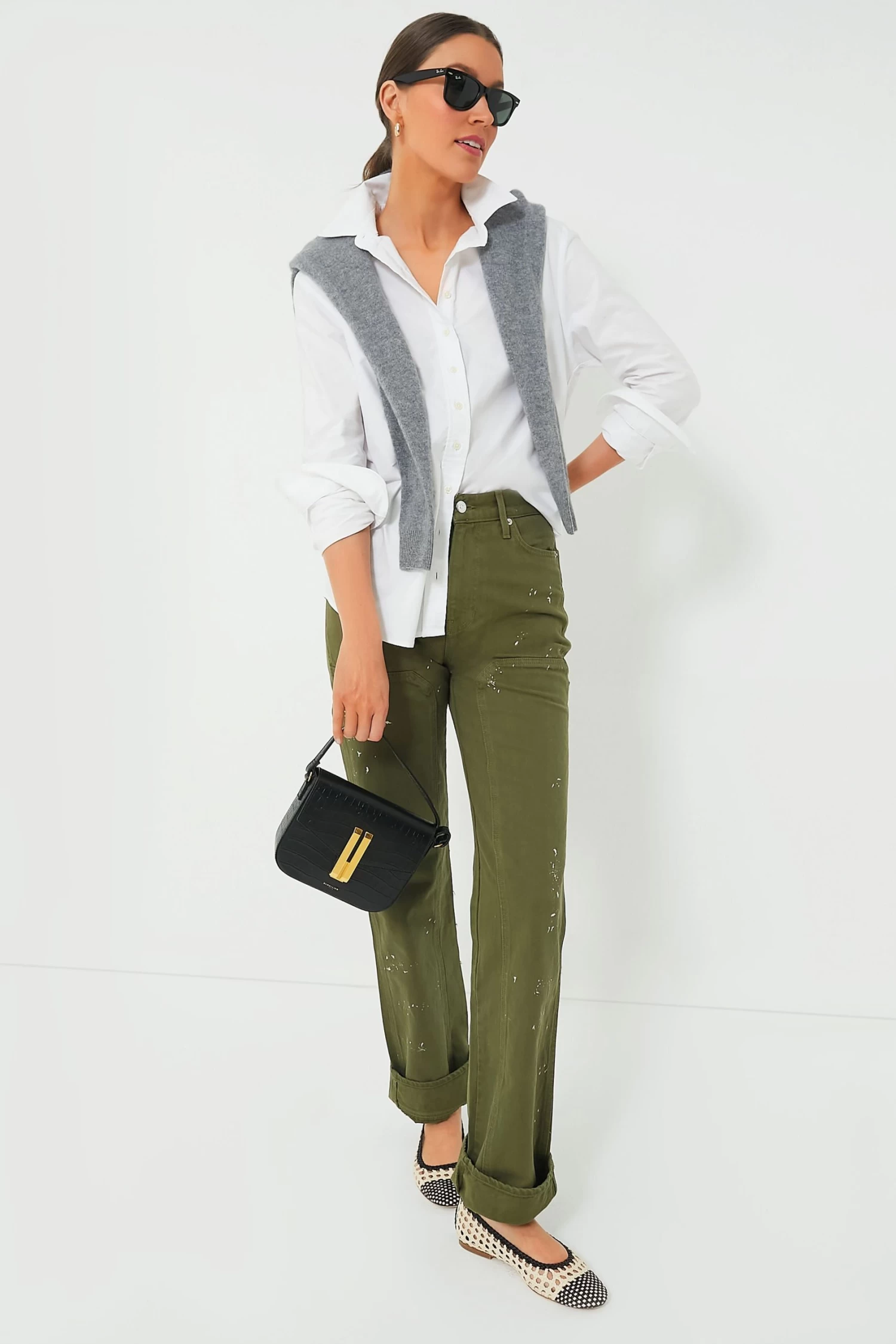 Statement jeans with trend-led details—introducing the Army Dylan Paint Splatter Pant, with oversized patch pockets, cuffs and a paint-flecked look. Contrast stitching, a hammer loop, and Veronica Beard’s signature V-shape belt loop at its back complete the look of this boyfriend-style jean. Style with a tucked-in top and finish with heels for the ultimate downtown cool.