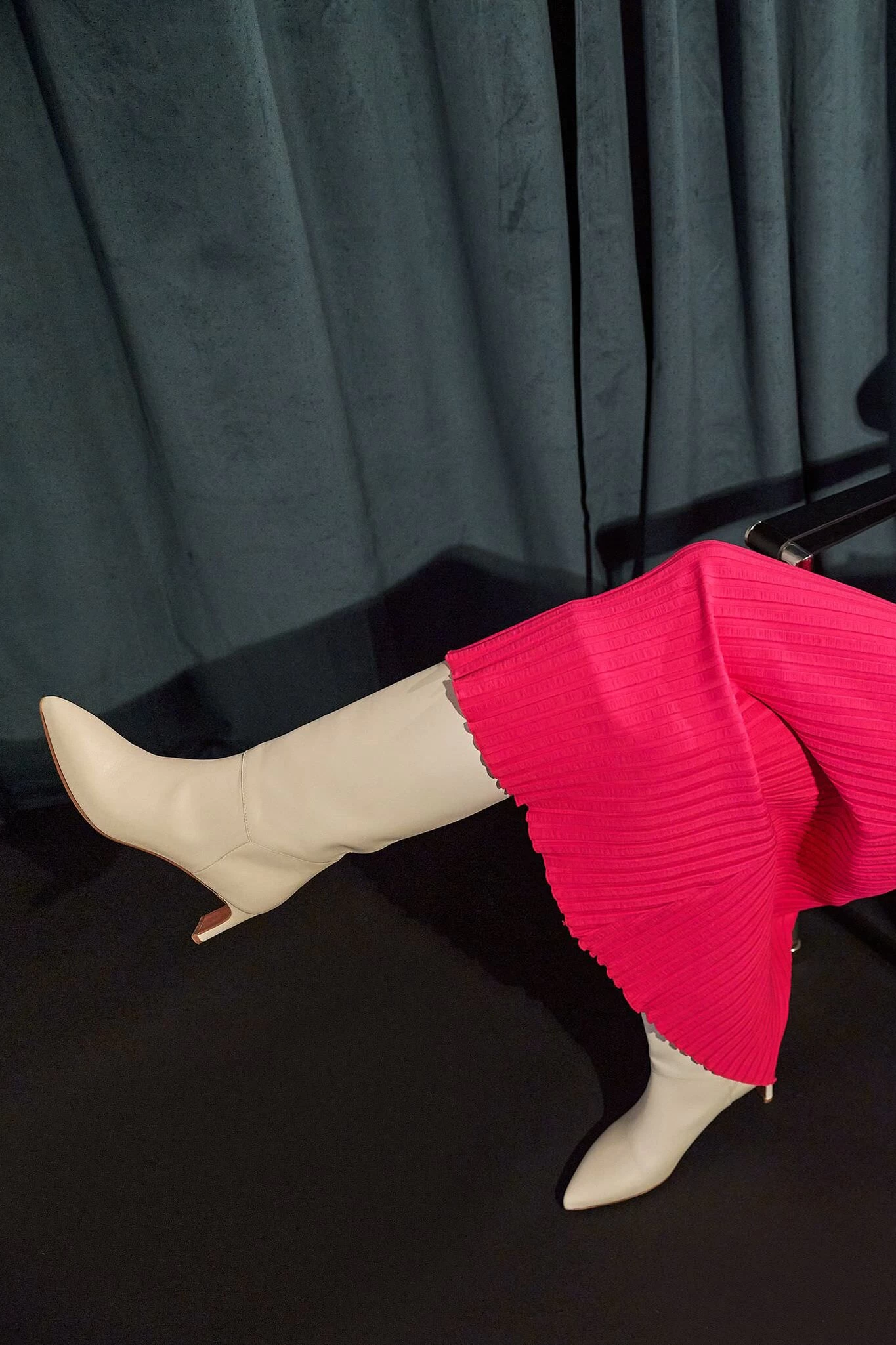 The White Lou Walking Boots fit right in with trends for this season in a bright white hue. Featuring a chic and sleek pointed toe, a thin block heel, and made of luxe leather, this silhouette is meant to complement a wide array of outfits. Tuck skinny jeans into them and add a blazer for a cool-girl look to wear on casual Fridays at the office, or style them with a mini dress for a night out on the town.